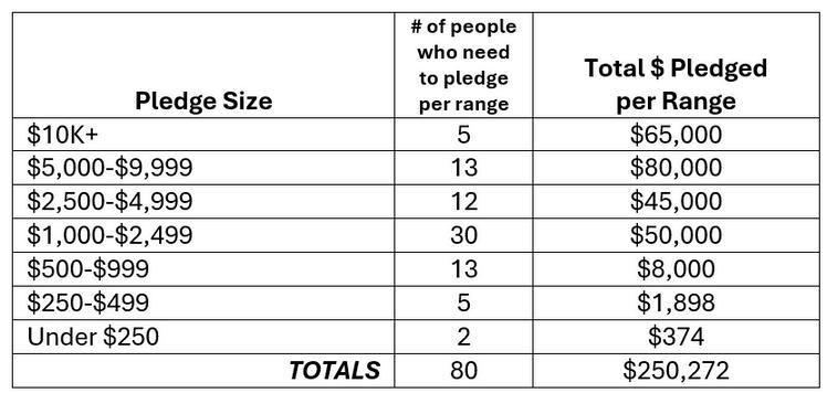 While $250,000 might sound like a hefty goal, it really isn’t when everyone makes a pledge for what they are capable of contributing.