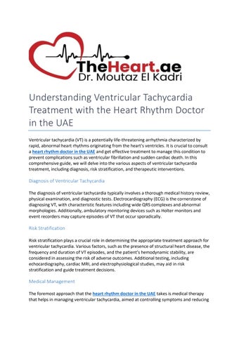 Ventricular tachycardia (VT) is a potentially life-threatening arrhythmia characterized by rapid, abnormal heart rhythms originating from the heart's ventricles. It is crucial to consult a heart rhythm doctor in the UAE and get effective treatment to manage this condition to prevent complications such as ventricular fibrillation and sudden cardiac death. In this comprehensive guide, we will delve into the various aspects of ventricular tachycardia treatment, including diagnosis, risk stratification, and therapeutic interventions.