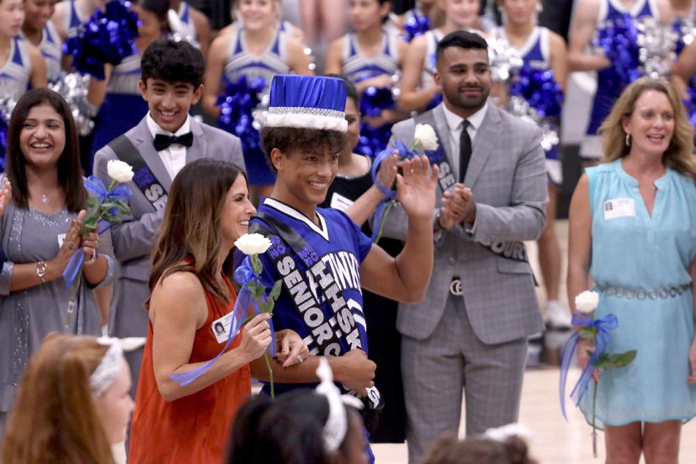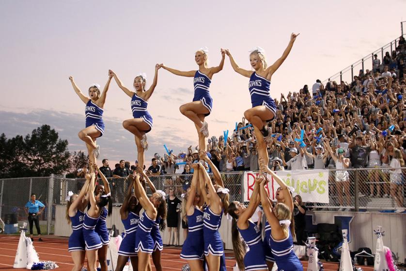 09 Seniors Jackson Keeney, Barrett Adams and Aryan Sharma sing along to the chorus of “Hey Baby.” The three have been in band together since freshman year and are leading the trumpet section this year to end their high school band careers.Photo by Emma Short Freshman Ryan Reasonover performs “America the Beautiful” at Castle Hills Elementary for band’s March-a-Thon fundraiser. The annual event raised $15,000 last year and donations will go toward expenses such as new equipment, snacks on contest days and purchasing/repair expenses for secondhalfofhomecominggame. Photoby Thecheersquadgetsintostuntsbeforeakickoff.Thisiscalled the“kickoffline,”whichtheyperformduringeverykickoffand chant“Ahhhwoosh,Hawkprideneverdies!” PhotobyHenryPham Photospread Senior homecoming king Landon Hill and queen Isabella Nations pose after the halftime show. Nations was crowned at the game, while Hill was crowned during the pep rally earlier that day. Photo by Peyton Kuschmeider