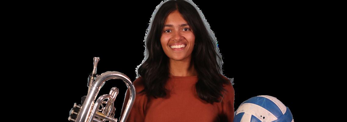 On top of volleyball, Jooma is a mellophone player for the marching band. Rehearsal begins at 4:30 p.m. and usually ends at 7:30 p.m. However, Jooma usually stays after rehearsal is over to practice her marching assignments independently and with the help of upperclassmen.