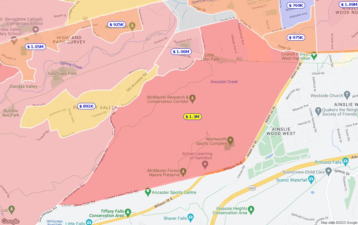 H4162077 05/01/2023 $1,185,000 Sold Residential Freehold Sale Hamilton Dundas (41) Pleasant Valley (414) 3 2.00 -20,000 8 Full - Fully Finished - Walk-Out 6 1,375 55,000 100.00 x 123.00 1955 / 51-99 Years $5,853 Gas Baseboard, Forced Air Bungalow 06/28/2023 $1,145,000 Fully Finished 100.00 123.00 $35,000 $1,180,000 $1,145,000 Researched and prepared by Michael Heddle Royal LePage State Realty This represents an estimated sale price for this property. It is not the same as the opinion of value in an appraisal developed by a licensed appraiser under the Uniform Standards of Professional Appraisal Practice