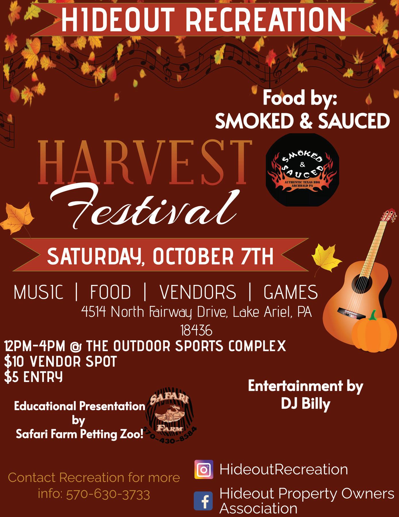 HARVEST FESTIVAL - 12-4 p.m. - at the Outdoor Sports Complex