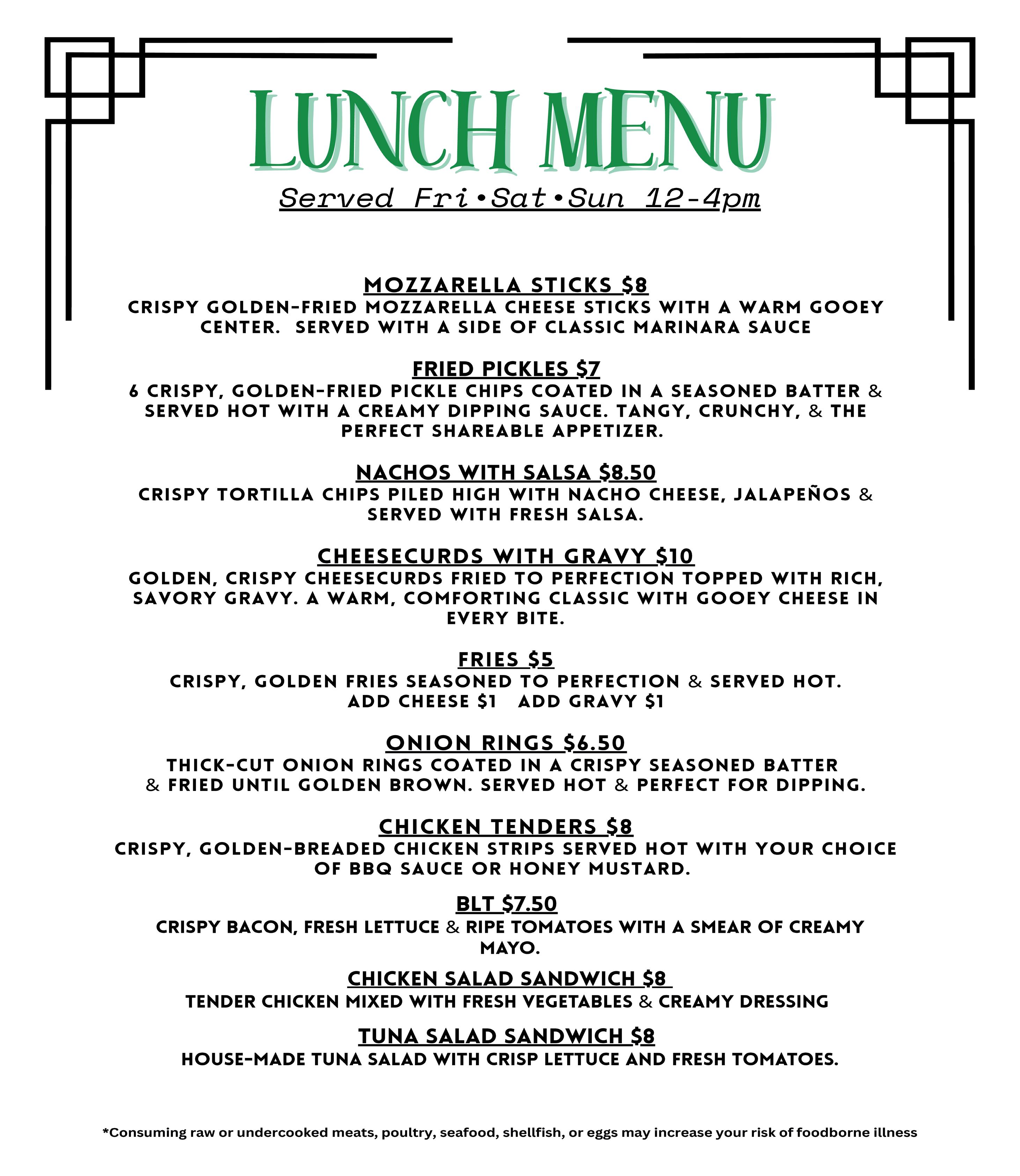 31. Reopened the Clubhouse pub side on Thursday, 3/12, on schedule and with a new menu and fresh food items.