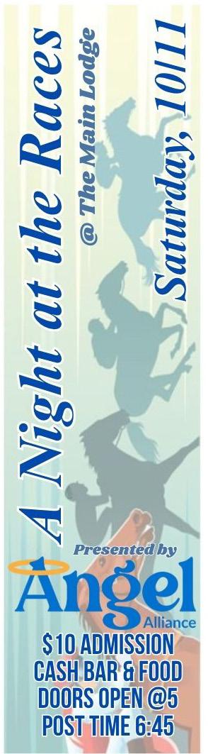 HIDEOUT QUILTERS SALE: 9am-3pm lower level of Clubhouse NIGHT AT THE RACES: 6pm, Main Lodge, $10pp