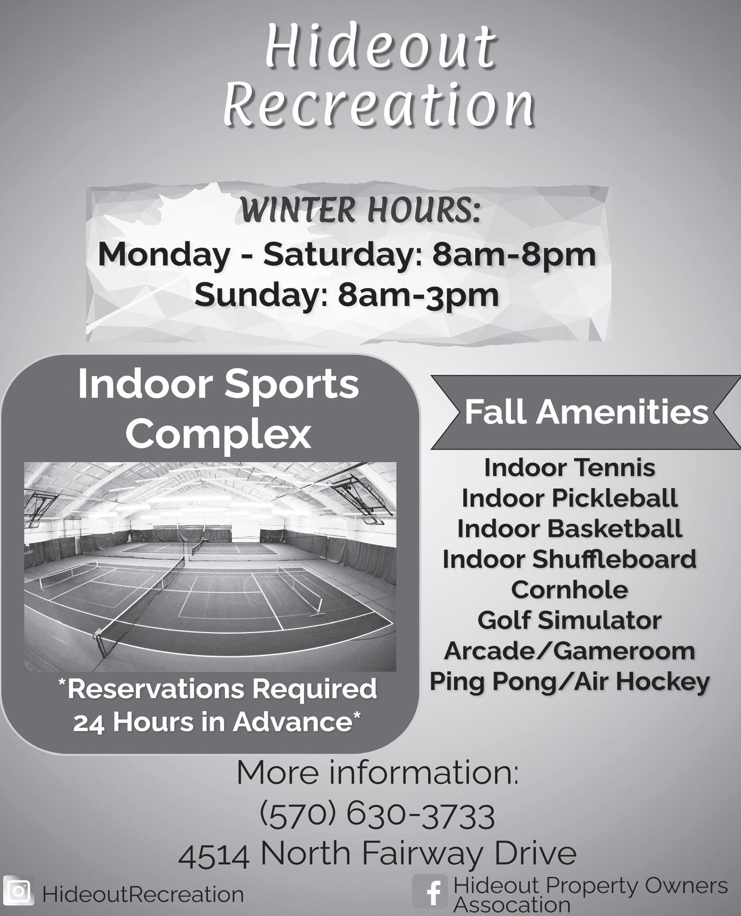 Another year has come and gone, as the saying goes. We hope you were able to enjoy the holidays, and we wish you a healthy and happy 2023. The Hideout was blessed with some cold weather and early snow, allowing us to open the Ski Hill Complex on December 17. This is the earliest we have been able to open the Ski Hill in recent memory. We realize this is a mixed blessing because, certainly, all of us will face increased heating bills and discomfort from the cold. We have already received our first snow of the season, and as usual, our maintenance staff did an excellent job clearing our roadways and amenity facilities.