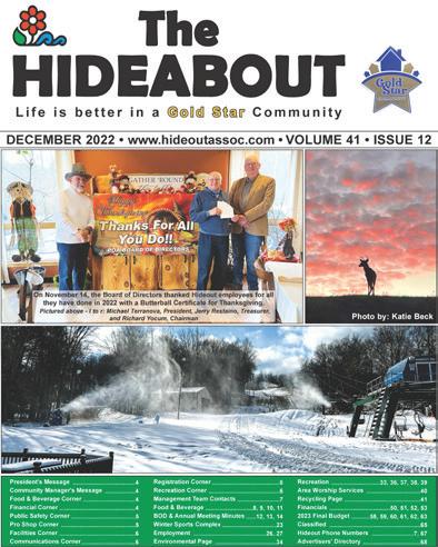 FROM JOHN BOANDL, RECREATION MANAGERAs this year comes to an end, the Recreation Department would like to thank all of the amazing community members in The Hideout for another successful year. We could not think of a better way to wrap up 2022 than with the month of December, which was filled with so many great events.