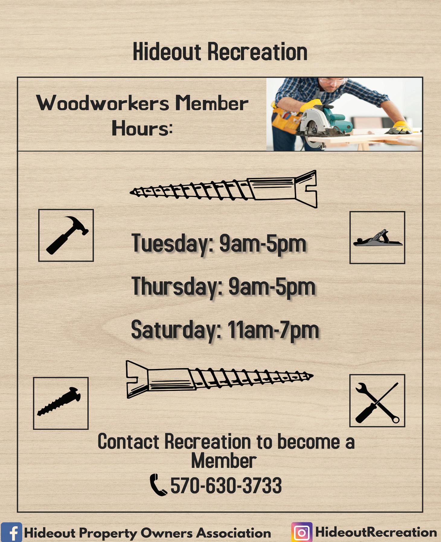 Hideout "official" Facebook page (@ Hideout Property Owners Association) for updates and closures. As a reminder, there is no outside advertising on The Hideout Facebook page and advertisements will be removed. Over 3,600 members are receiving email blasts from The Hideout. This is a great way to keep current with information directly from the POA. The Hideabout Extra is developed bi-weekly, in a day-by-day format for a quick guide to the days' happenings, and is available at the gates. Look for the color change to know it is a new edition!