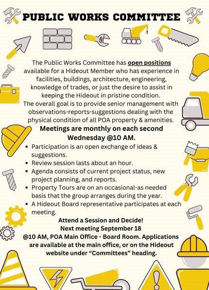 Friday, November 8, 2024, 1 p.m. at the POA Board Room & on Zoom