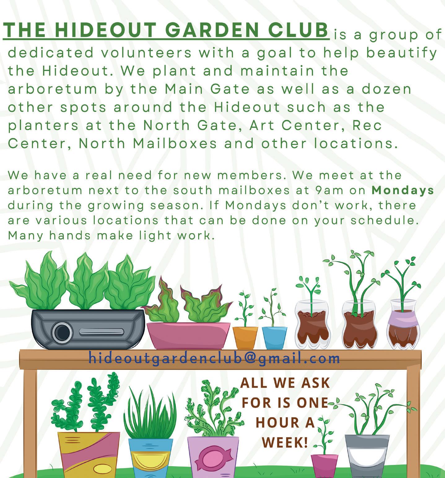 Published monthly for the members of the Property Owners Association of The Hideout, Inc.