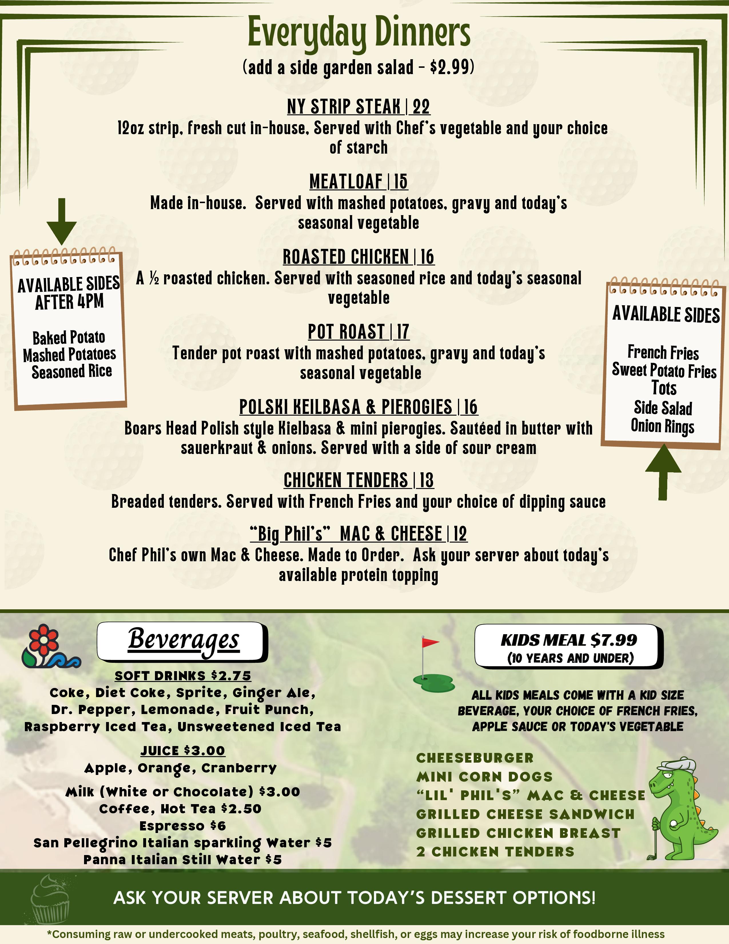 I thank all of our valued members who continue to support your Food & Beverage amenities. We are here for you and encourage members who have not been at one of our locations, to check us out. Until next month. Thanks.