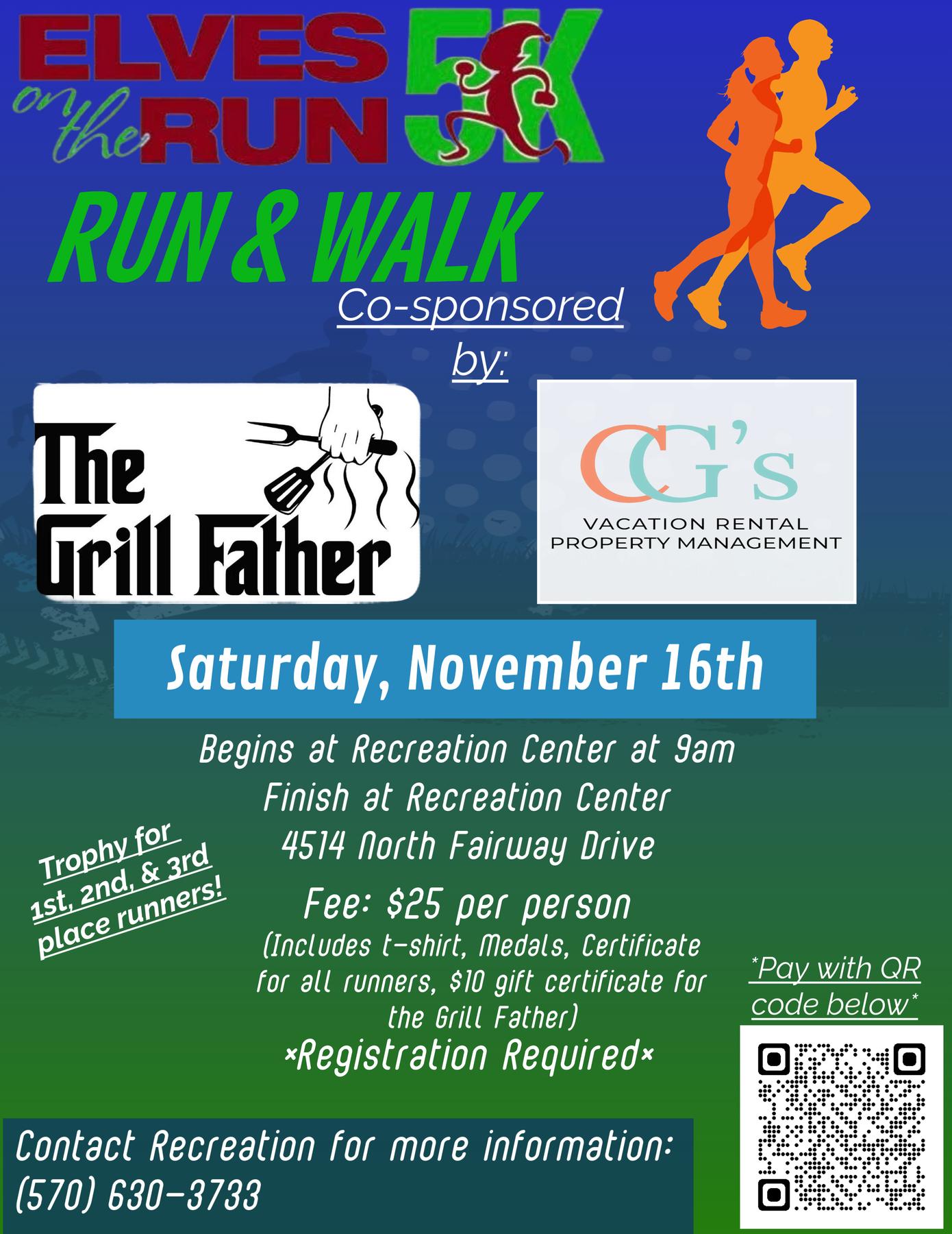 Recreation is teaming with The Hideout Elves to raise funds for free or reduced-cost youth events. Working toward that goal, The Elves are hosting a 5K Run & Walk on Saturday, November 16th starting at the Recreation Center at 9am. Stay tuned for more fundraisers and the resulting events.