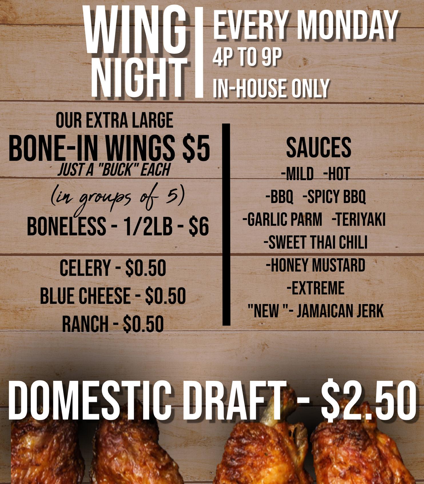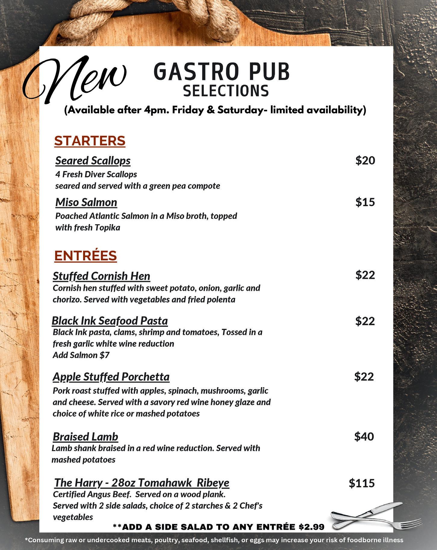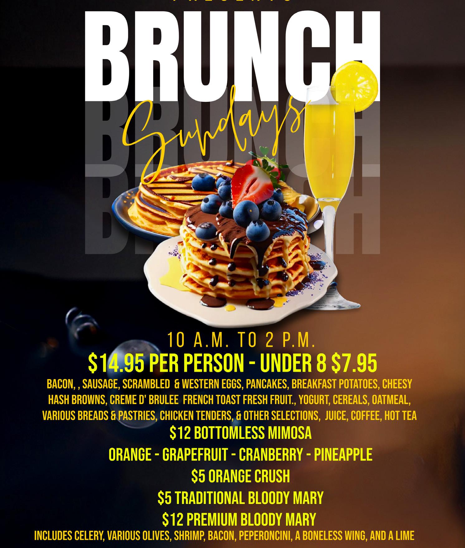 Saturday’s – Prime Rib feature Sunday’s – Football on all screens, Brunch 10am-2pm & Build Your Own Burgers at 4pm Full menu offering: