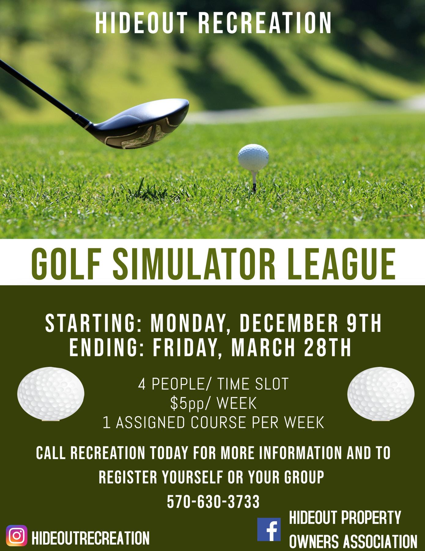 Upcoming we have the Craft Fair on Saturday, November 30th from 10am to 3pm at the Indoor Sports Complex. The Golf Simulator League starts on December 9th, so sign your 4-person team or yourself as an
