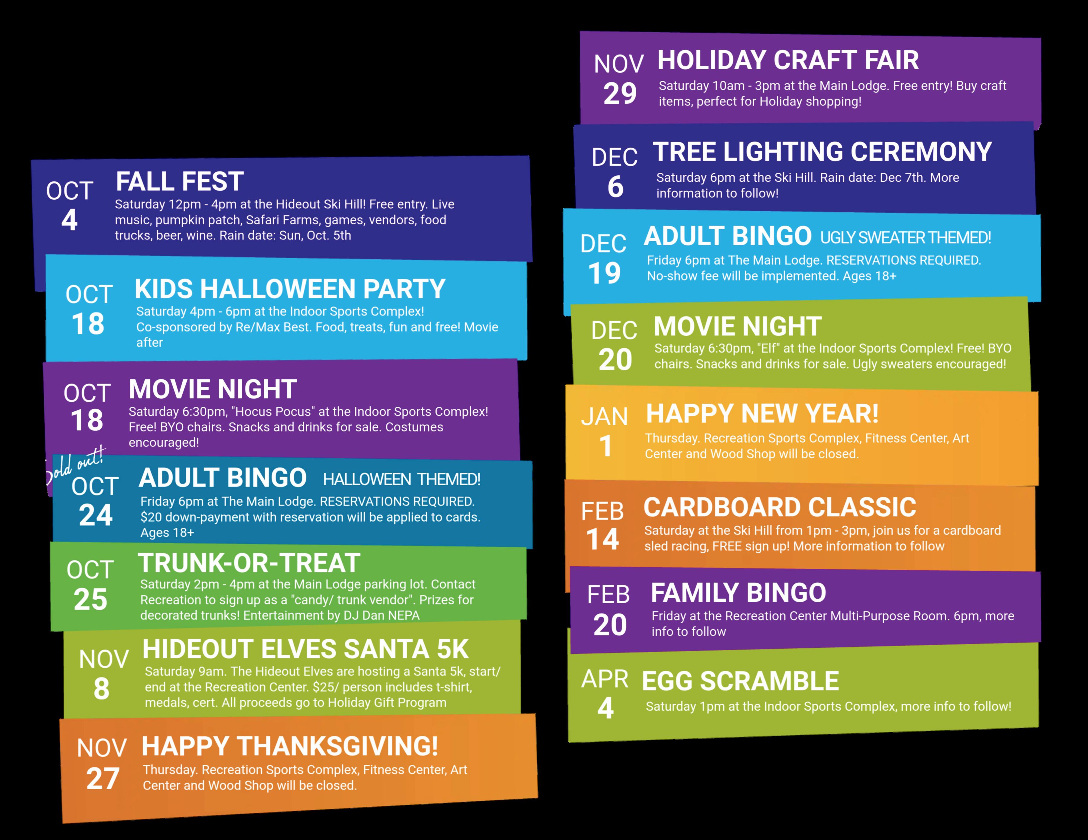 As the crisp autumn air settles in and the leaves begin their colorful transformation, we want to share some important updates and reminders for our Hideout community members. As we move further into the fall, please keep these key items in mind: