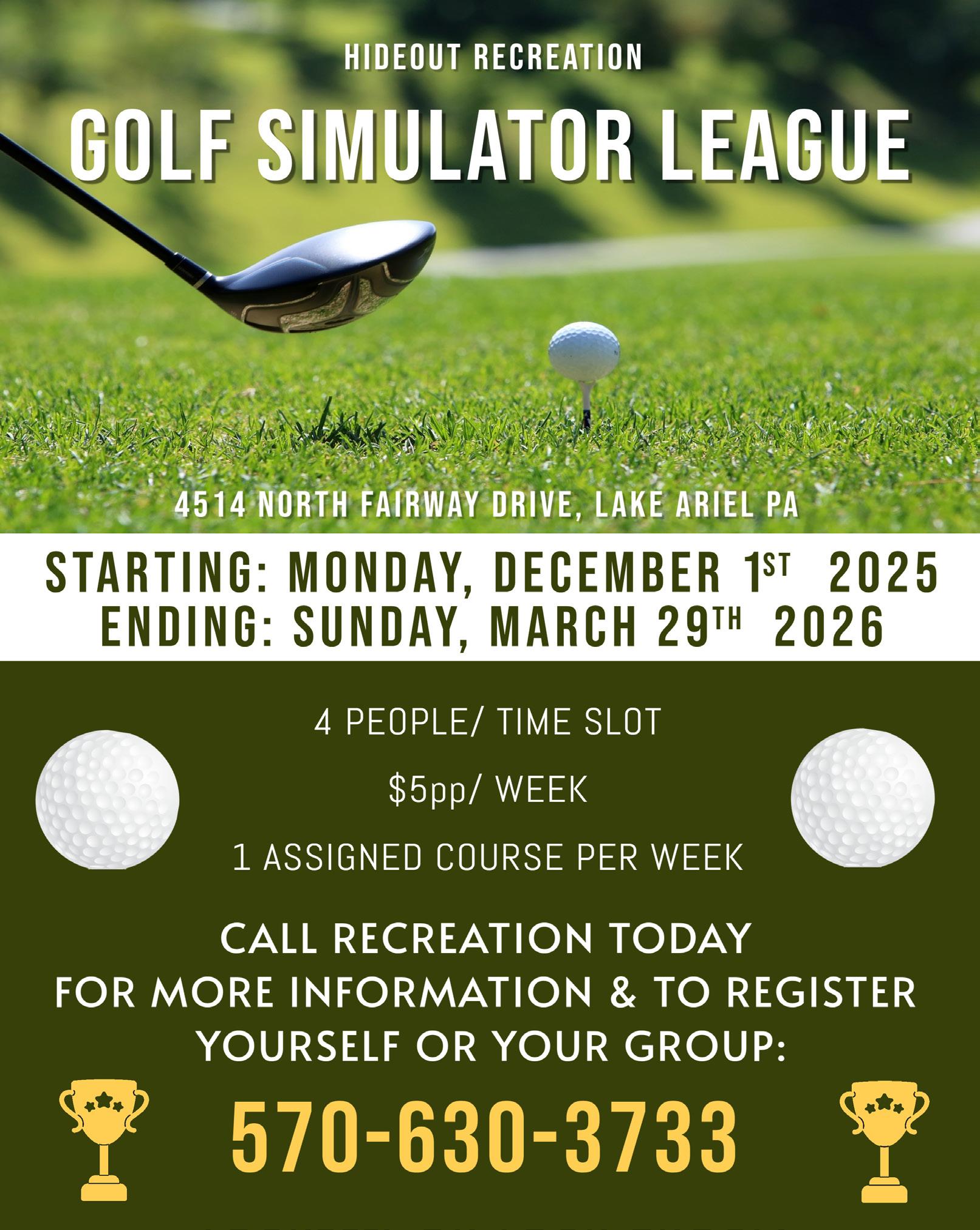 Michael Kline - Golf Course Manager (570) 698-4100, ext. 186 mkline@thehideout.us