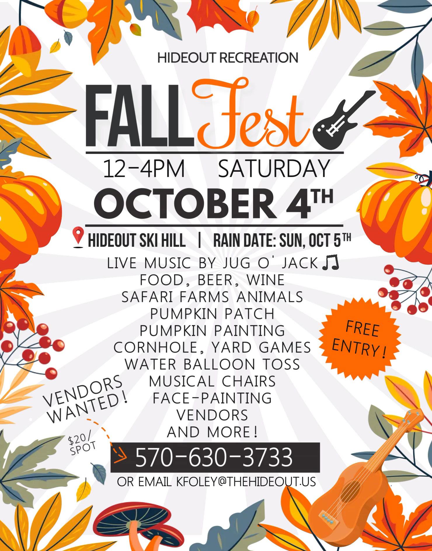 October 4th is the Fall Fest on the Ski hill. In appreciation of Octoberfest, we will be offering German inspired food, drink and beer from 12-4, in addition to all the activities the rec department is planning.
