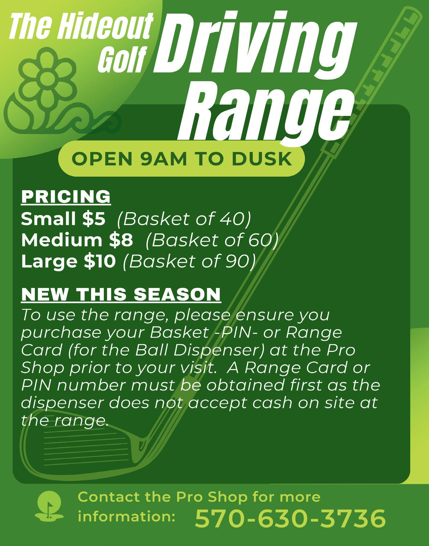 Mike Burns - Golf Pro Shop Manager (570) 698-4100, ext. 183 mburns@thehideout.us