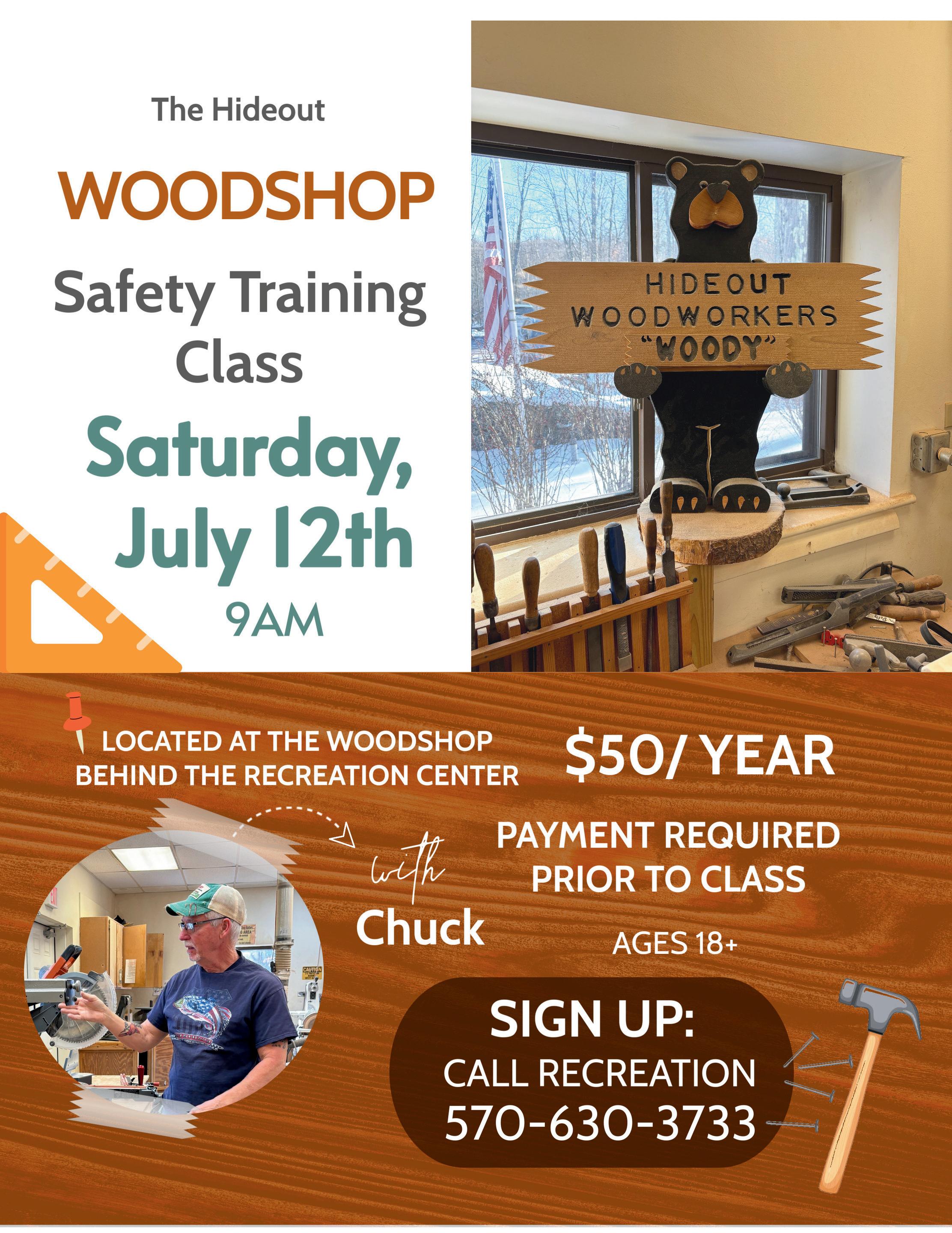 Matthew Puzio - Public Safety Manager (570) 698-4100, ext. 146 mpuzio@thehideout.us