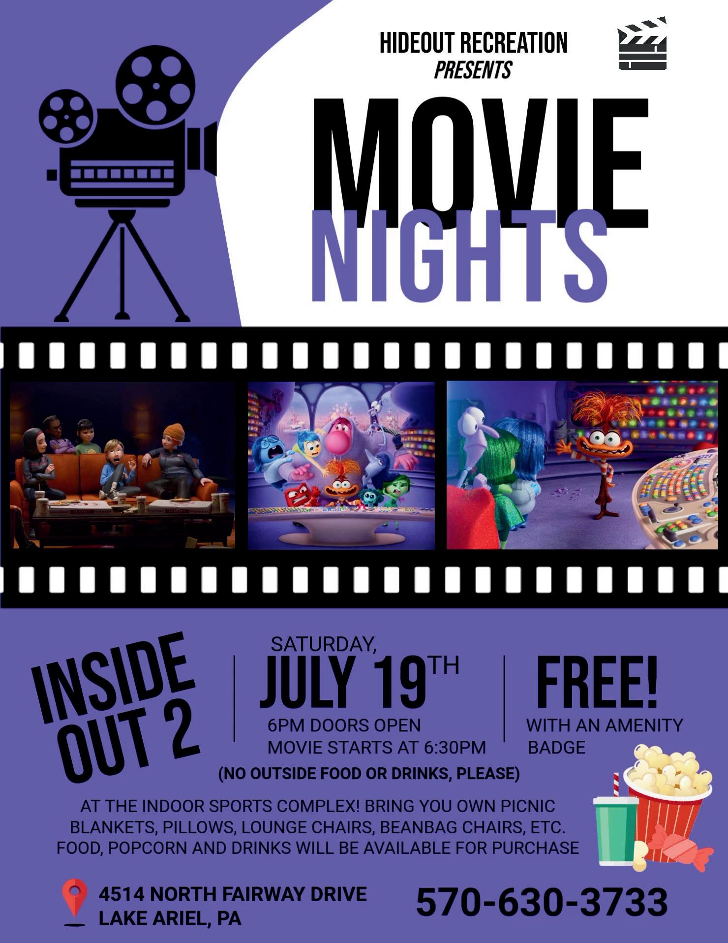 our annual firework display. But the fun doesn’t end there. There is a Volleyball Tournament on July 12th at the Outdoor Sports Complex, a Family Bingo on July 16th at the Indoor Sports Complex. This will be followed by a fishing derby on July 26th at the Marina, and a Youth and Adult Triathlon on August 1st and 2nd. In addition, Recreation purchased an inflatable movie screen which can be moved throughout the community. Stay tuned for movies on the Ski Hill.