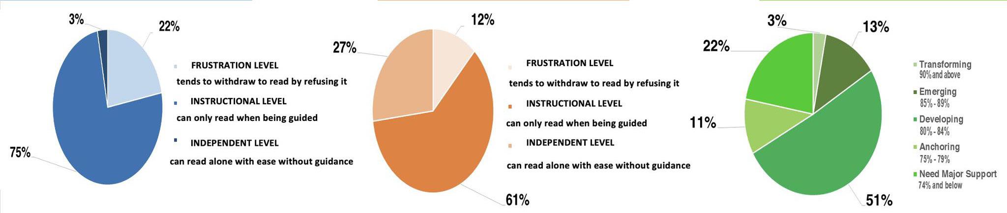 The findings indicate that 25% of the 212 Grade 7 students who completed the Phil-IRI pretest, or 12%, fall below the “frustration reading level,” and most of them read at their grade level. Among the 25 frustrated readers, three were classified as “struggling readers,” she said.