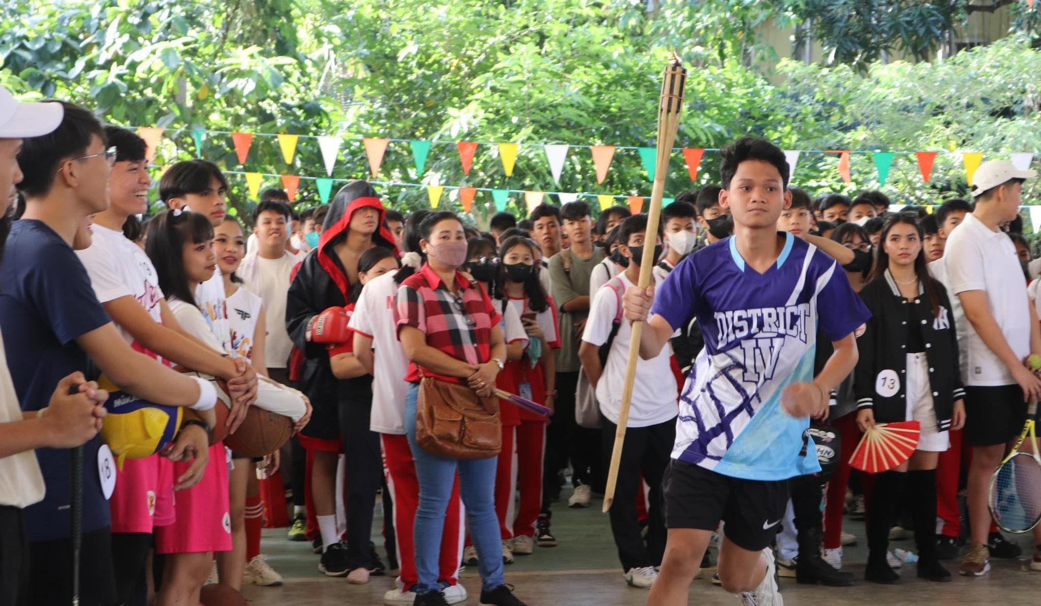 TORCH LIGHTING AND RELAYING. Alfonso Lester Anota from Grade 10 Aguinaldo leads the torch lighting and relaying ceremony that signals the start of the 2023 Intramurals at Ponciano Bernardo High School, March 6.