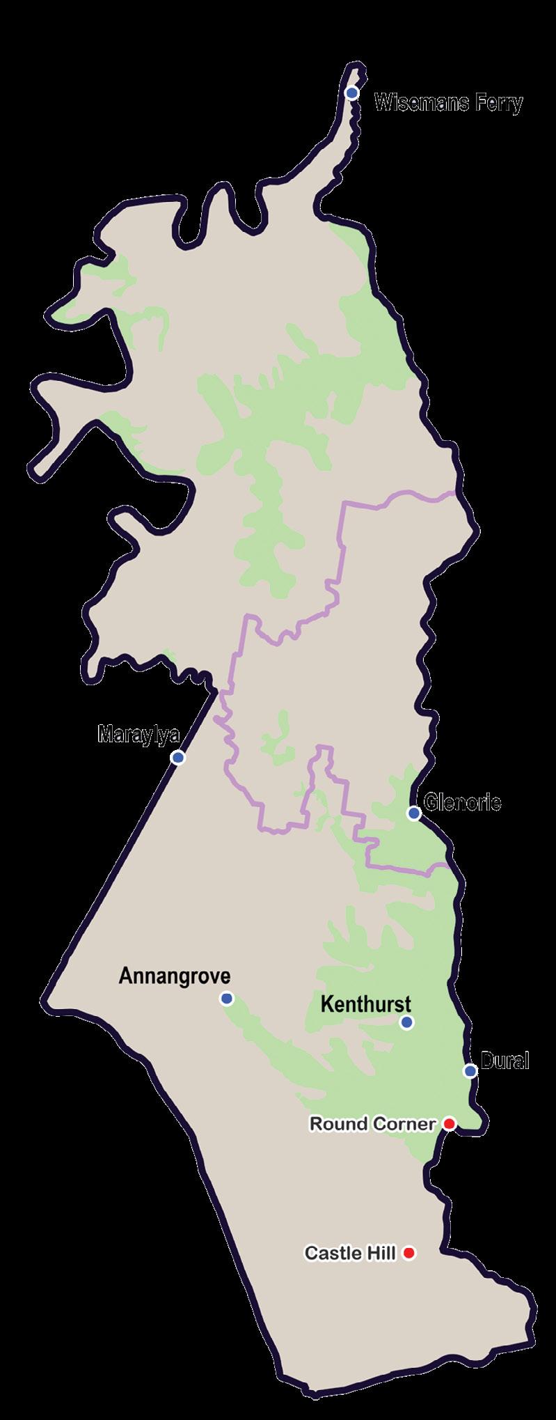 The Glenorie Rural Village is located along Old Northern Road and is split between The Hills Shire and Hornsby Shire Local Government Areas (LGAs).