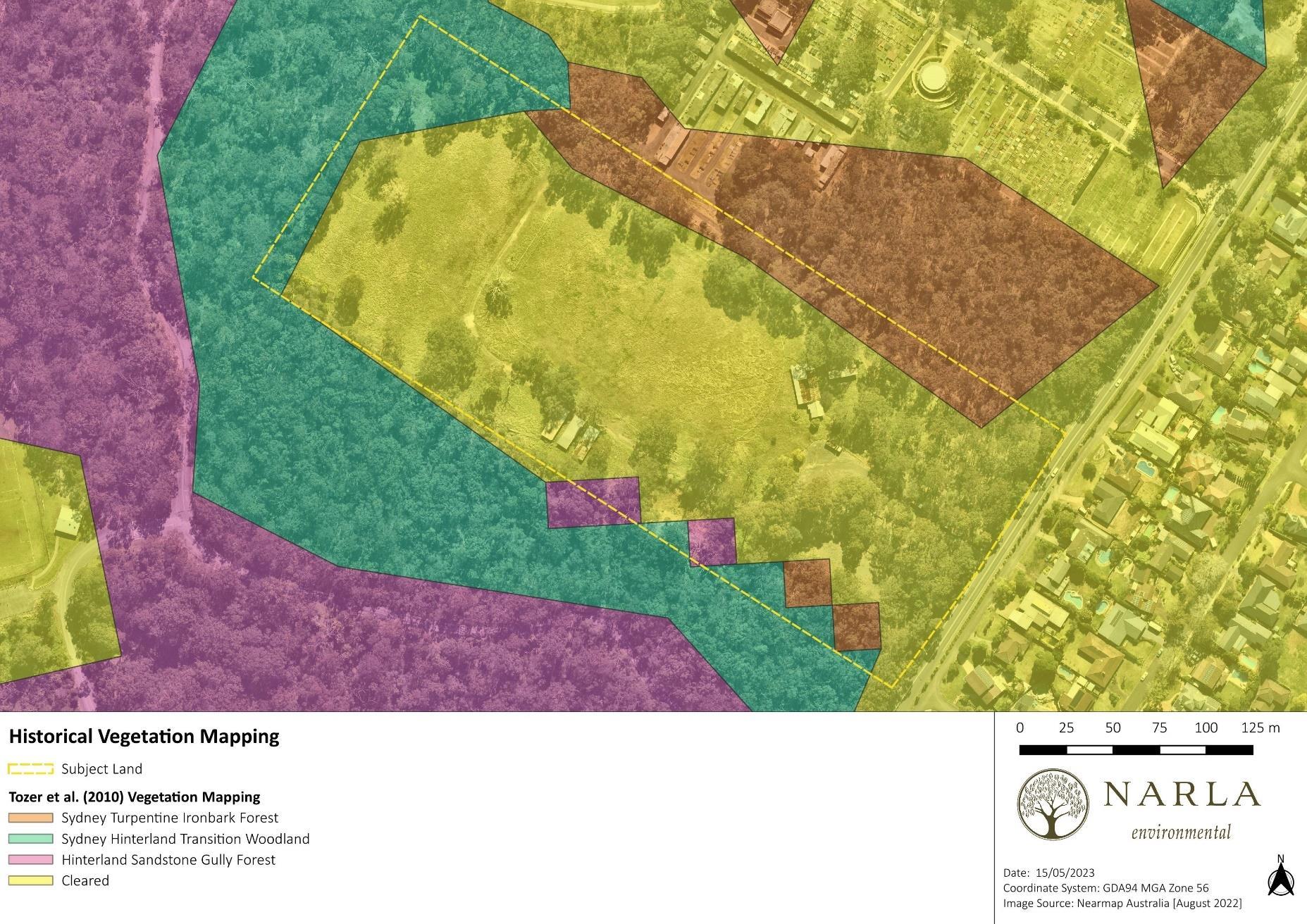 The Subject Land is located on the western side of Gilbert Road, with Castle Hill Cemetery and Field 1 Fred Caterson Reserve to the north and remnant bushland to the west and south. The Subject Land is located with The Hills Local Government Area (LGA) and covers an area of approximately 6.8ha Currently, it is mostly cleared of native vegetation except for the peripheries and an area along the eastern boundary. Historical imagery indicates the Subject Land has existed in its current state since 1970 (or before).