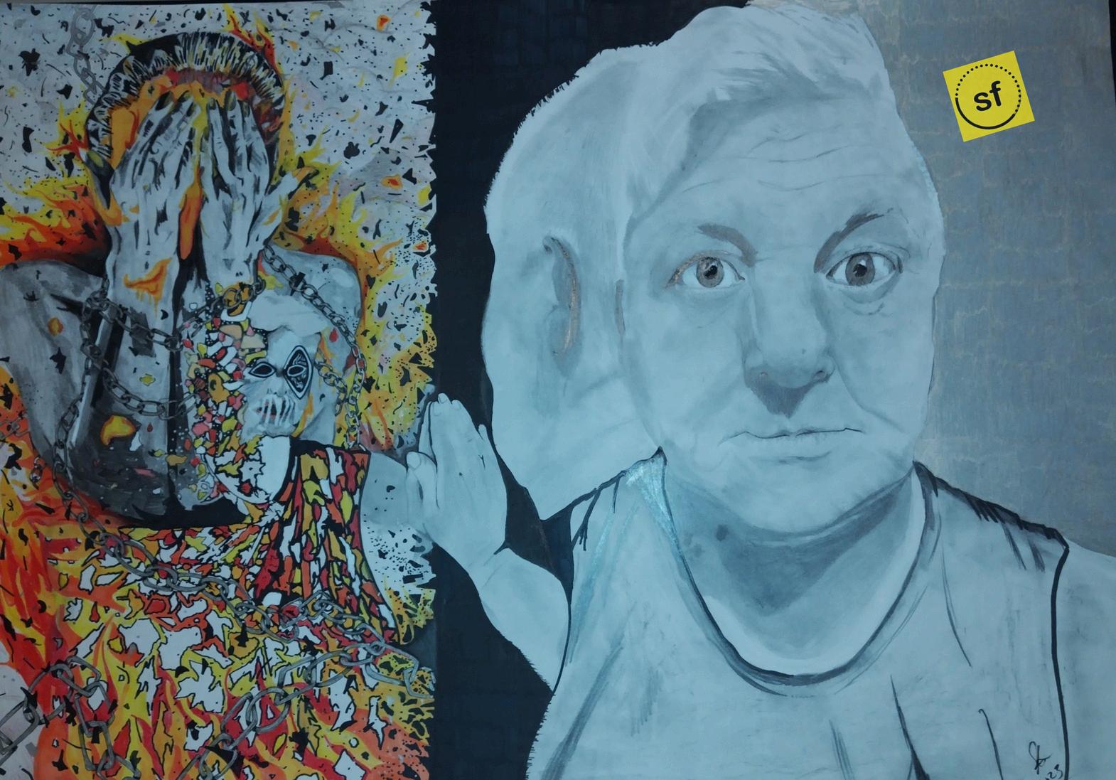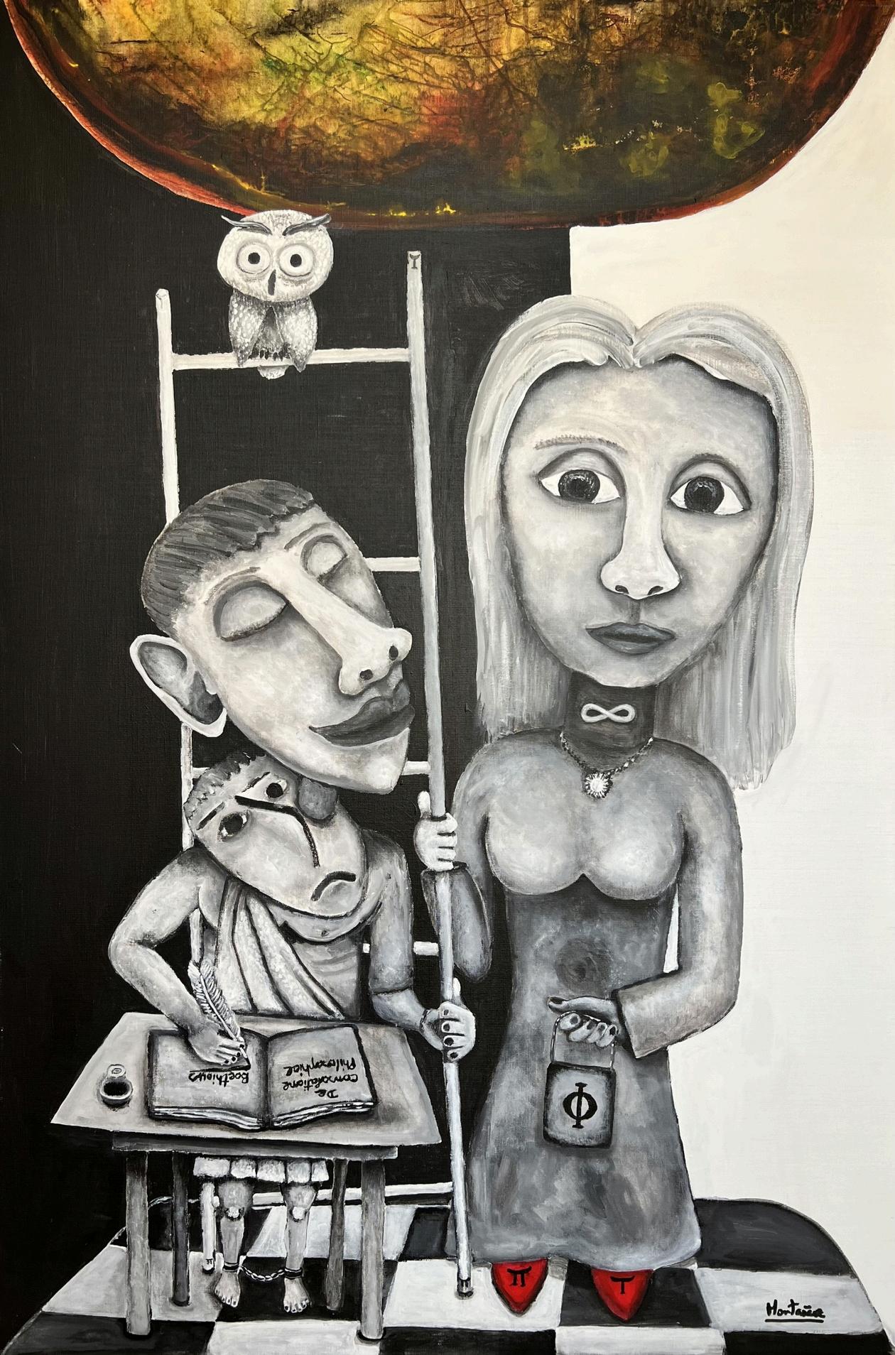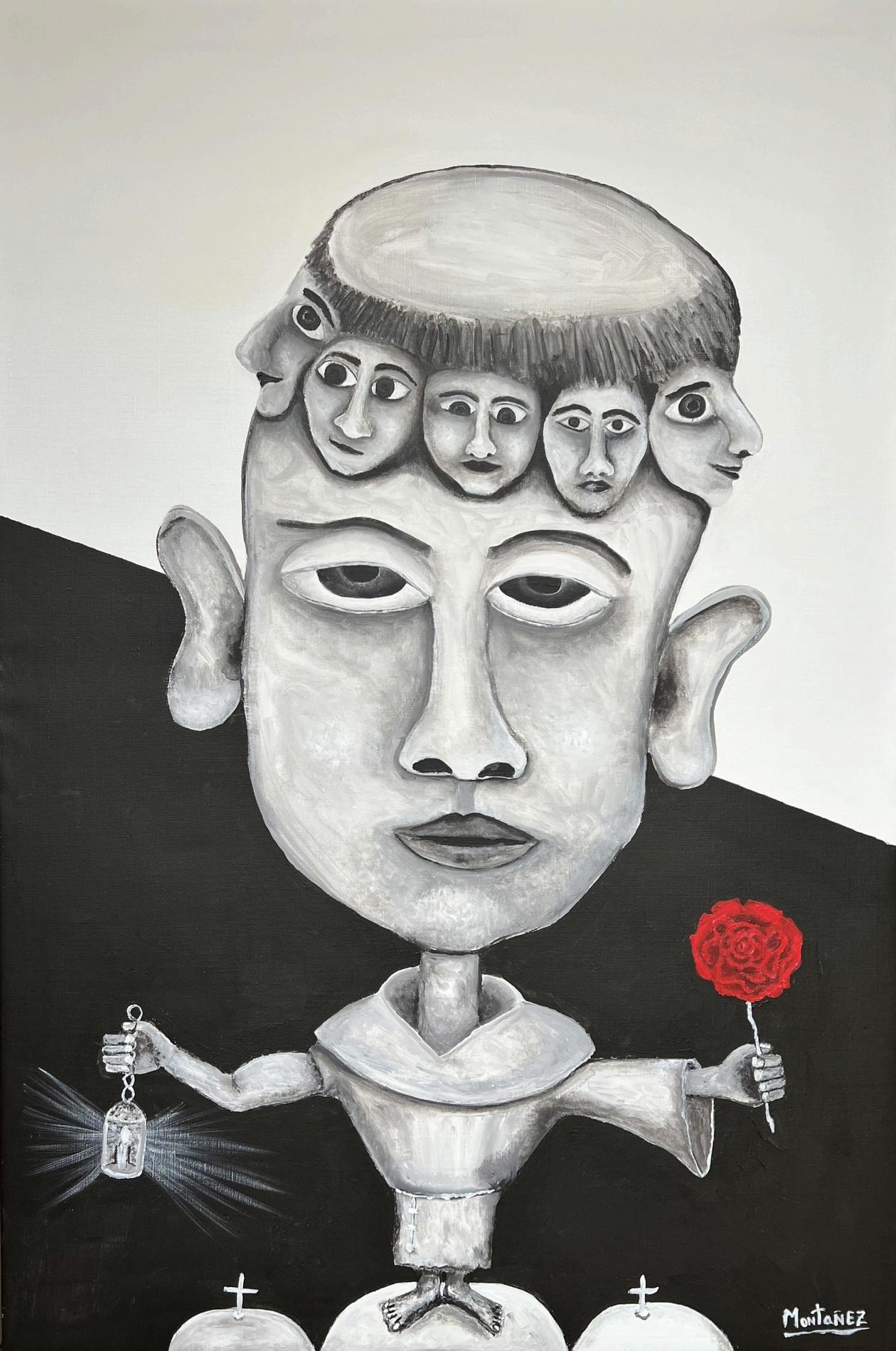 "VITAM MONACHAE NIGRAE" — "THE LIFE OF THE BLACK MONA LISA." OILS ON WOODEN PANEL 51CM X 40.5CM