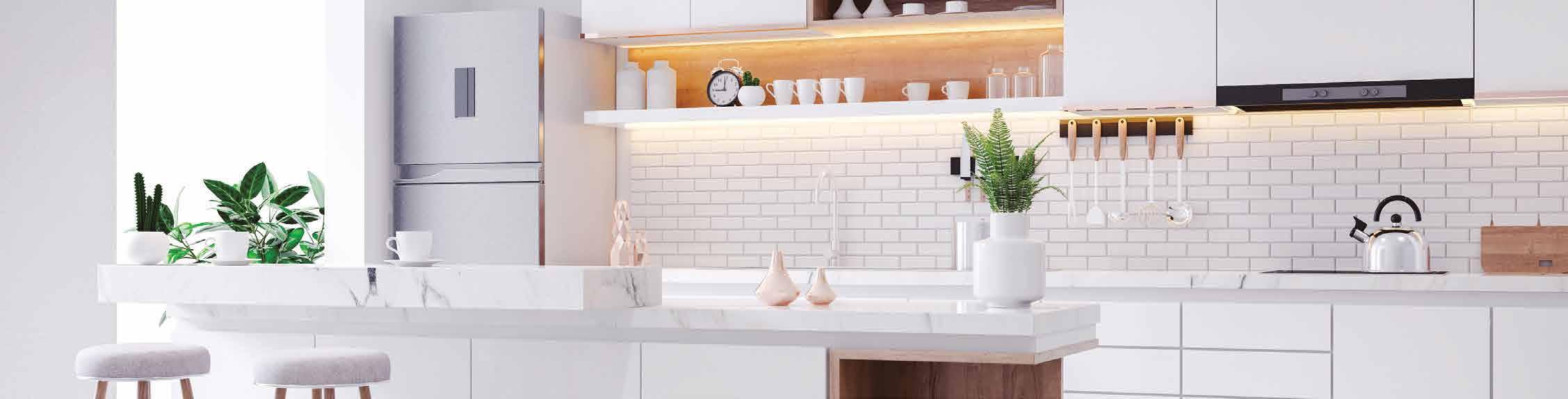 • Cabinets Free Demolition. Style: White Shaker Customize up to 50 In. ft. Fabrication & Installation.