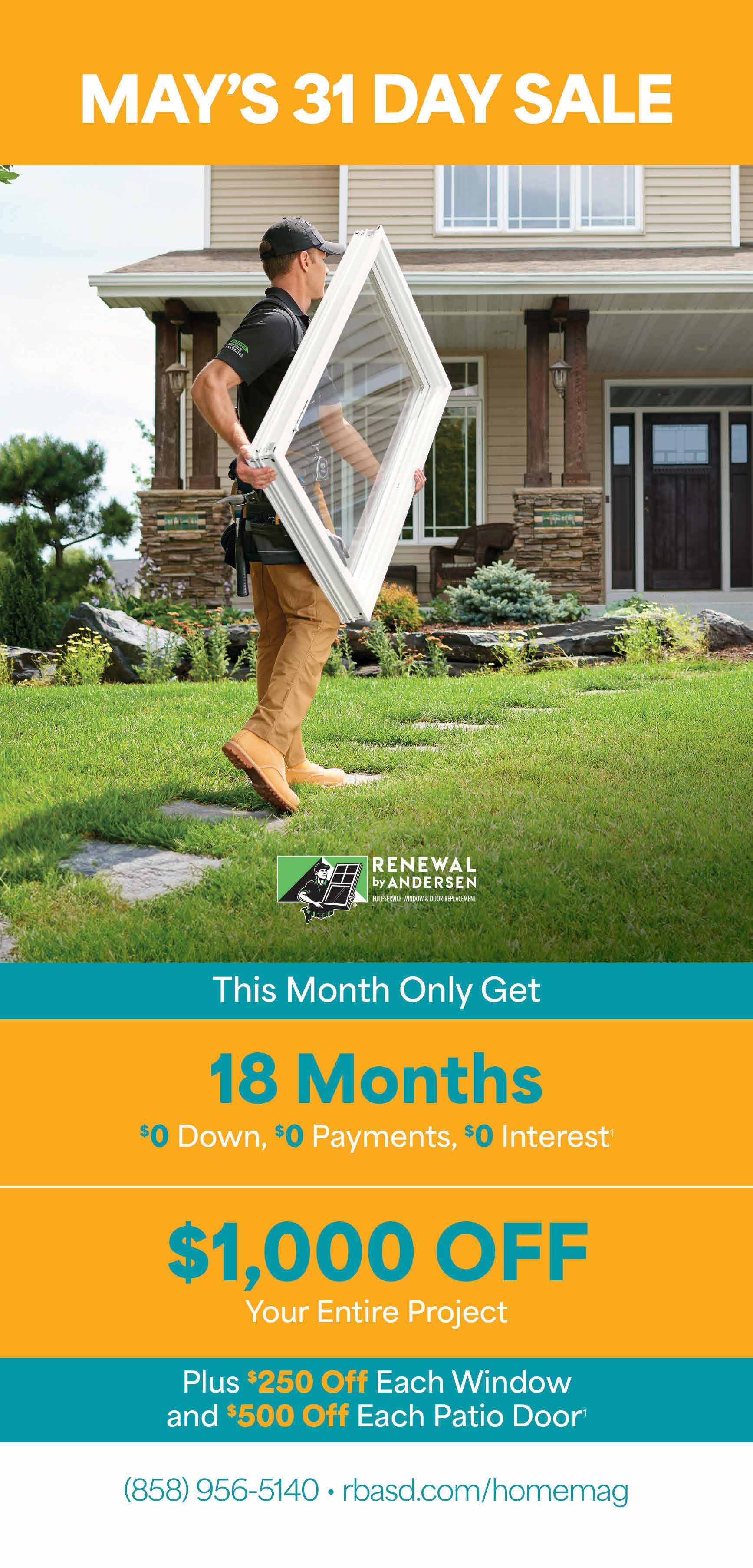12 | MAY 2024 | THE HOMEMAG BACKS OUR ADVERTISERS WITH A $1,000 SERVICE WARRANTY 619-345-0425 THE HIGHEST QUALITY CLEARVIEW RETRACTABLE SCREENS, SHADES & AWNINGS FINANCING AVAILABLE Serving all of Southern California! Made in America! Lic #972618 Motorized Canvas Roof Pergola Slide on Wire Canopy Motorized Power Screens w/ Zip Tracks Full Cassette Retractable Awning Clearview Retractable Screen Doors Vista View Retractable Screen Doors Up to 20 ft wide for a single unit The most innovative product line, fully custom installations with the absolute best customer service in the industry! www.QualityImprovementProducts.com Showroom Appointments Available 314 S. Johnson Ave., El Cajon, CA 92020 • 310 S. Maple St. Unit J, Corona, CA 92878 Call for a FREE in-home consultation!!! (858) 264-1425