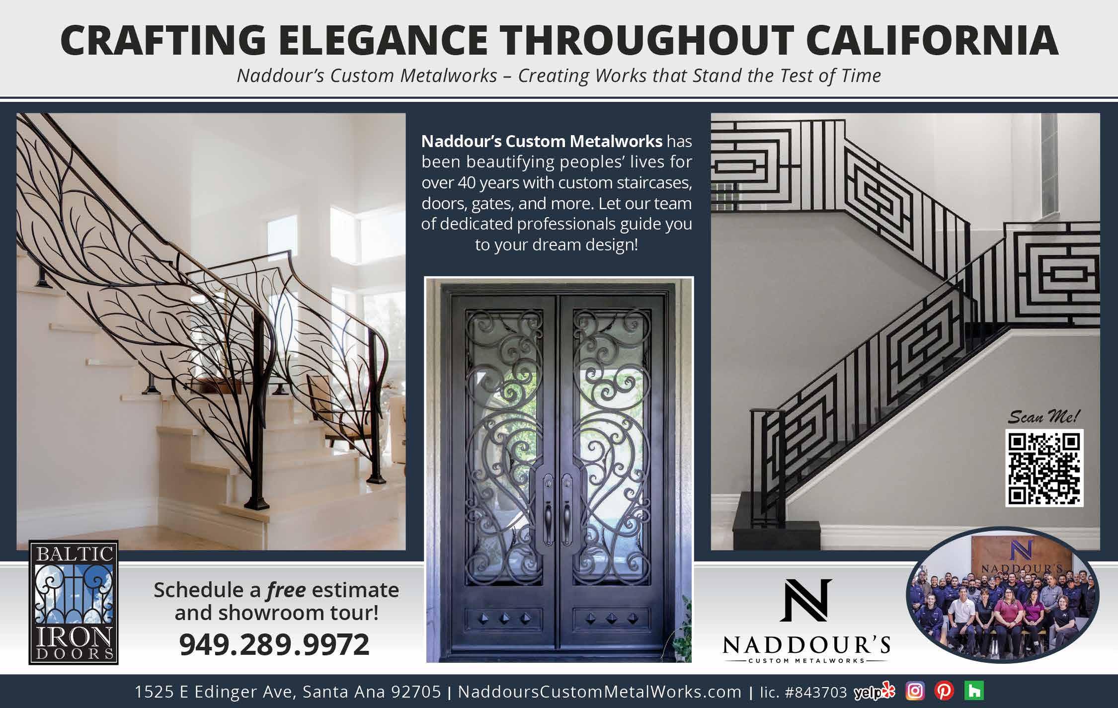52 | SEPTEMBER 2023 | THEHOMEMAG BACKS OUR ADVERTISERS WITH A $1,000 SERVICE WARRANTY IRONDOORSSHOP.COM ( 949 ) 378-9250 Visit Our Showroom at: 23001 Del Lago Dr., Ste B1, Laguna Hills, CA 92653 Orange County’s Premier Door Supplier! We Design and Manufacture Custom Wrought Iron and Metal Front and Patio Doors • Many Sizes and Styles Available in Stock Our Prices Can’t Be Beat! SHOP & SAVE WITH US! FINANCING AVAILABLE Professional design and personal attention from start to finish. Family-Owned & Operated Come Visit Our Showroom Insured & Lic #938230 We Design and Build for all your Exterior and Interior Needs! • Kitchens & Bathrooms • Room Additions • ADU & Garage Conversions • Pools & Hardscapes • Exterior Finishes • Windows & Doors • Flooring • Fireplaces & Mantels • Stairs & Railings Ready for a fresh look? 614 South Euclid St., Fullerton, CA 92832 | Hours: M–F 9 am–5 pm www.horizonremodelinginc.com Call us today at 949-544-8631