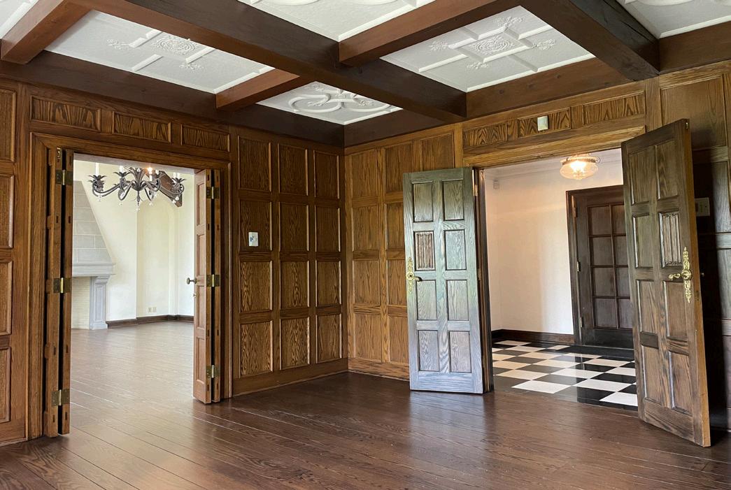 Much admired bespoke residence in a landmark location overlooking the fairways. One owner. Dramatic curb appeal with dual cobblestone driveways, walled courtyard and garage parking for 8 cars. Exceptional quality of construction and attention to detail. Baronial living room with vaulted beamed ceilings, massive hearth & two floor to ceiling bay windows. Richly panelled library. Formal dining room & handsome family room with period detailing both open to grand terrace. Sun filled kitchen with greenhouse dinette. Vaulted, beamed ceiling in primary bedroom offering an elegant ensuite bath & dressing room opens to both a terrace and balcony. Five additional bedrooms + 3 baths. 4 log burning fireplaces. Mature hardwood canopy, elevated frontage. Level tableland at rear. From all elevations, this home has a commanding presence. One of the city’s many signature properties, routinely entrusted to the Pettigrew Group for resale. $7,950,000