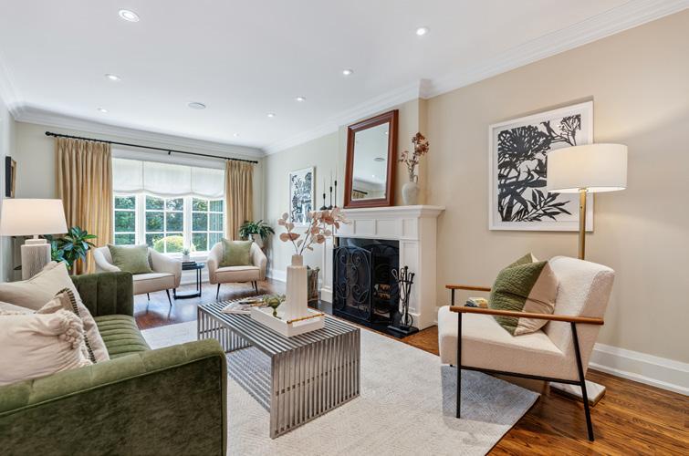 The main level provides plentiful space for gathering and entertaining with its chef’s kitchen, expansive living room with fireplace, grand formal dining room with fireplace and two sets of French doors with Juliette balconies, cheerful south-facing breakfast room, mud room with heated floors, and 3-piece bath with dog wash. The centre hall plan provides for wonderful flow while the bespoke architectural details elevate the space – the perfect blend of easy elegance, livability, and superb finishes.