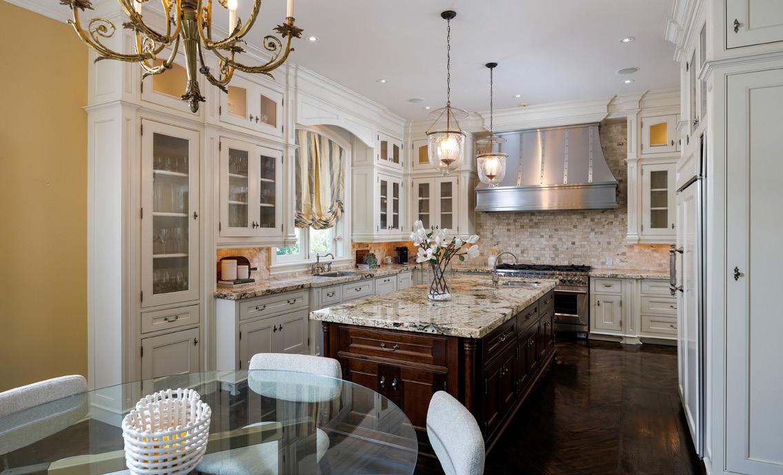 The state-of-the-art kitchen, anchored by an impressive 16 ft. island, flows seamlessly into the family room, with openings to an outdoor kitchen, terrace, and the magnificent gardens with pool. Upstairs, a spacious second level features four bedrooms plus a private office/den, highlighted by a luxurious primary suite.