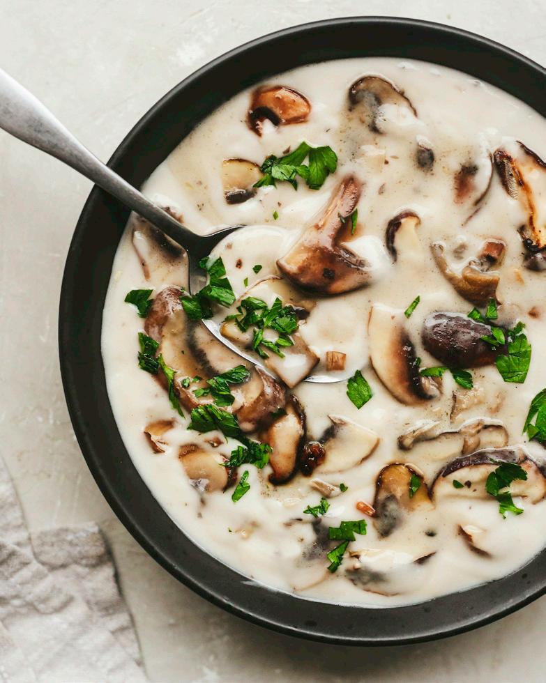THIS IS A DELICIOUSLY RICH AND CREAMY MUSHROOM SOUP THAT YOU MAKE IN ONE POT. IT MAKES A HEARTY SUPPER SERVED WITH A WARM BUTTERED ROLL OR RUSTIC CRUSTY BREAD FOR DIPPING. LEFTOVERS CAN BE PACKED IN A THERMOS FOR A HOMEMADE SCHOOL LUNCH, OR A HEART-WARMING SNACK AFTER A FALL OUTING.
