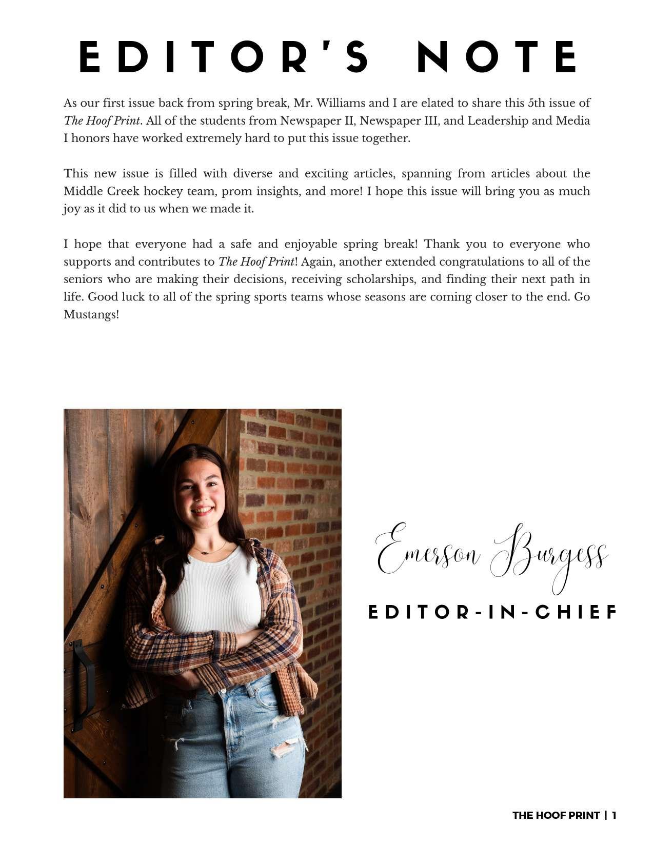 The Hoof Print | Spring 2025: Issue 5 by MCHS Creek Flow - Issuu