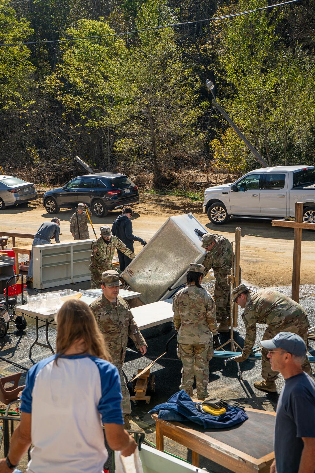 North Carolina National Guard Soldiers help local citizens and provide help with hurricane relief ef Cove Creek Baptist Church in Watauga County October 12, 2024.