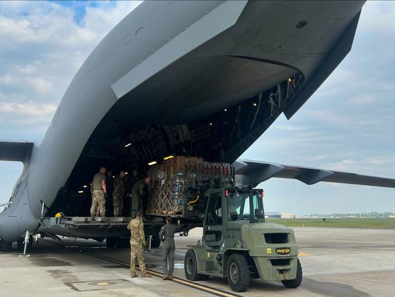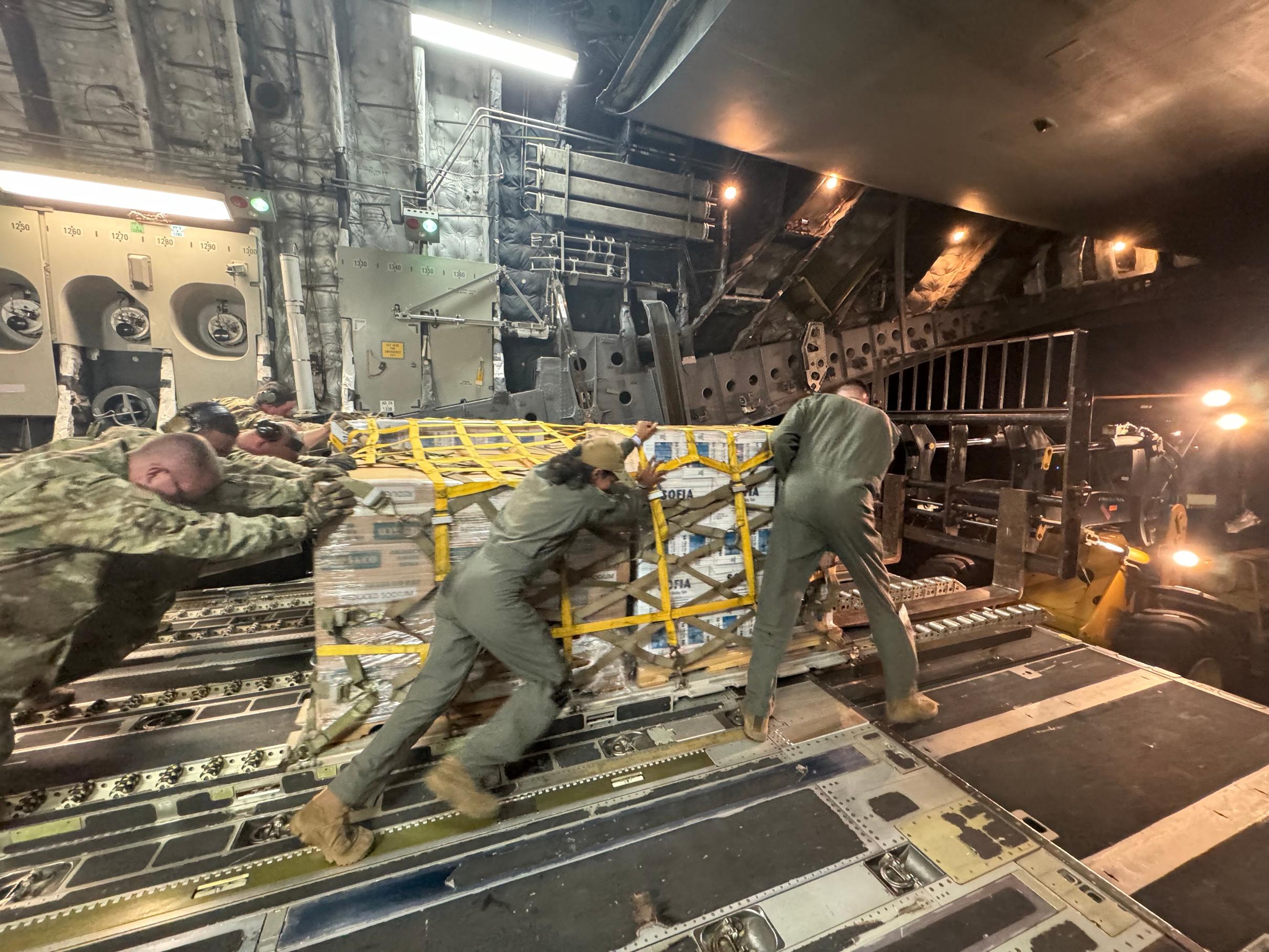 “It was a big effort by the Aerial Port and some augmented personnel we had here in Charlotte", said USAF Master Sgt. Jesse Huneycutt, 145th Logistic Readiness Squadron, Air Transportation Specialist. "All cargo had to be prepped, loaded onto 463L pallets, inspected, and planned for safety before we could load it on the jet. Completing all of this in just a few hours took a lot of people working long hours at a fast pace."
