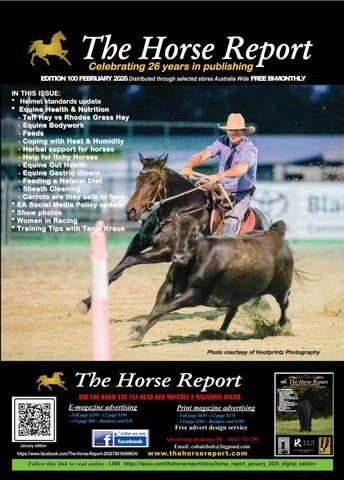The Horse Report it is a cost effective Equestrian magazine distributing 13,000 printed copies available FREE to readers in saddleries and produce stores in NSW and Queensland. The Horse Report tries to cover all disciplines from pony club to polo, rodeo to racing, show jumping to show horse, harness, campdrafting and much much more And as of early 2011 we are now available online to ensure no-one misses out on an issue no matter where you live. So if your looking to planning your advertising budget please consider including The Horse Report in your budget Upcoming Advertising Deadlines 24th of each month contact: Paula Anthony - Ph 07 55909721 www.thehorsereport.com Email:cobakibob@bigpond.com