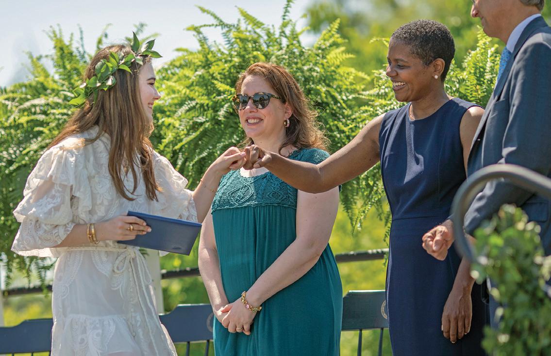 “Guess what? You scaled that impossible moment. Or maybe you stepped neatly around it, or you hacked it apart, piece by piece, until it was dust beneath your shoes. But you know what? You did it,” she said. To the newlyminted Hotchkiss alumni, she said, “You made it. You’re here. You are the singularly amazing Hotchkiss Class of 2021, and this is your graduation.”