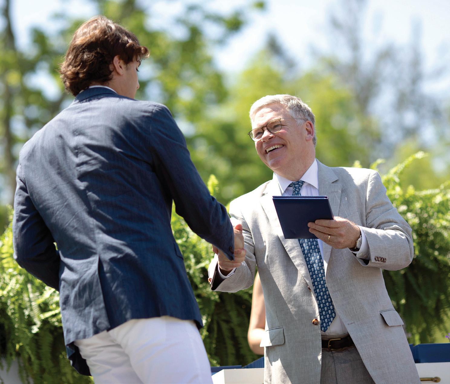 He thanked the Class of 2021 for working with the School community to complete the year without a major outbreak of COVID or an interruption in teaching and learning and for managing to keep the “the Hotchkiss bubble” essentially COVID-free.