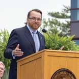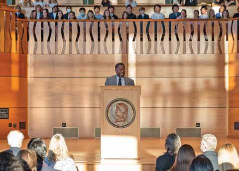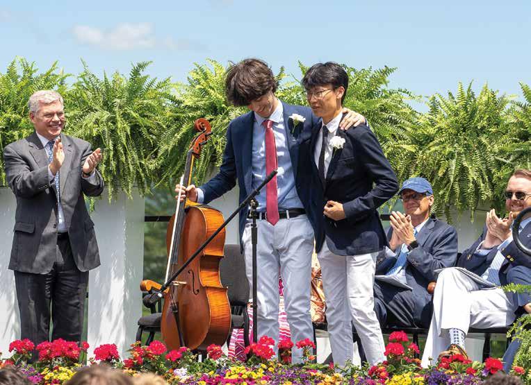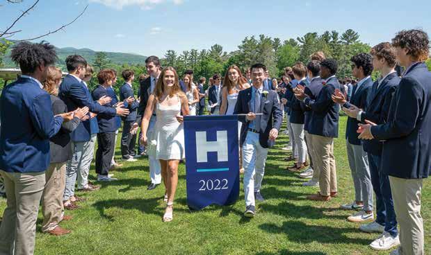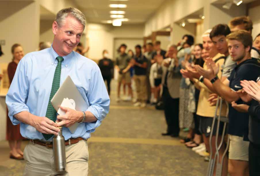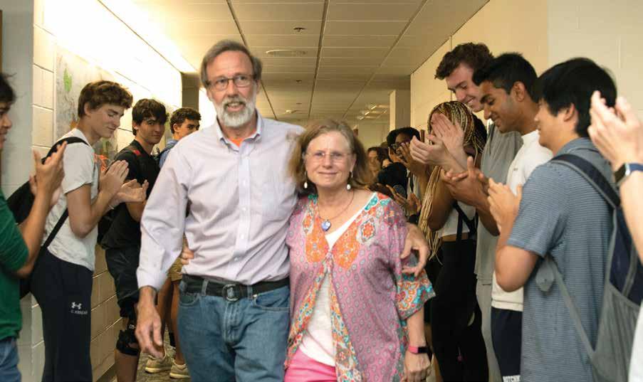 Retiring Hotchkiss faculty members take their final walk to rousing applause from students, faculty, and staff. Mathletes in arms, John Cooper (top left) and Letty Roberts (top right) together dedicated 65 years to the School (31 for Roberts and 34 for Cooper). Steve McKibben (left), dean of community life and instructor in English, as well as boys varsity basketball and lacrosse coach, dedicated a decade of service to the School and encouraged students to “just be a good person.” See their story on page 33.