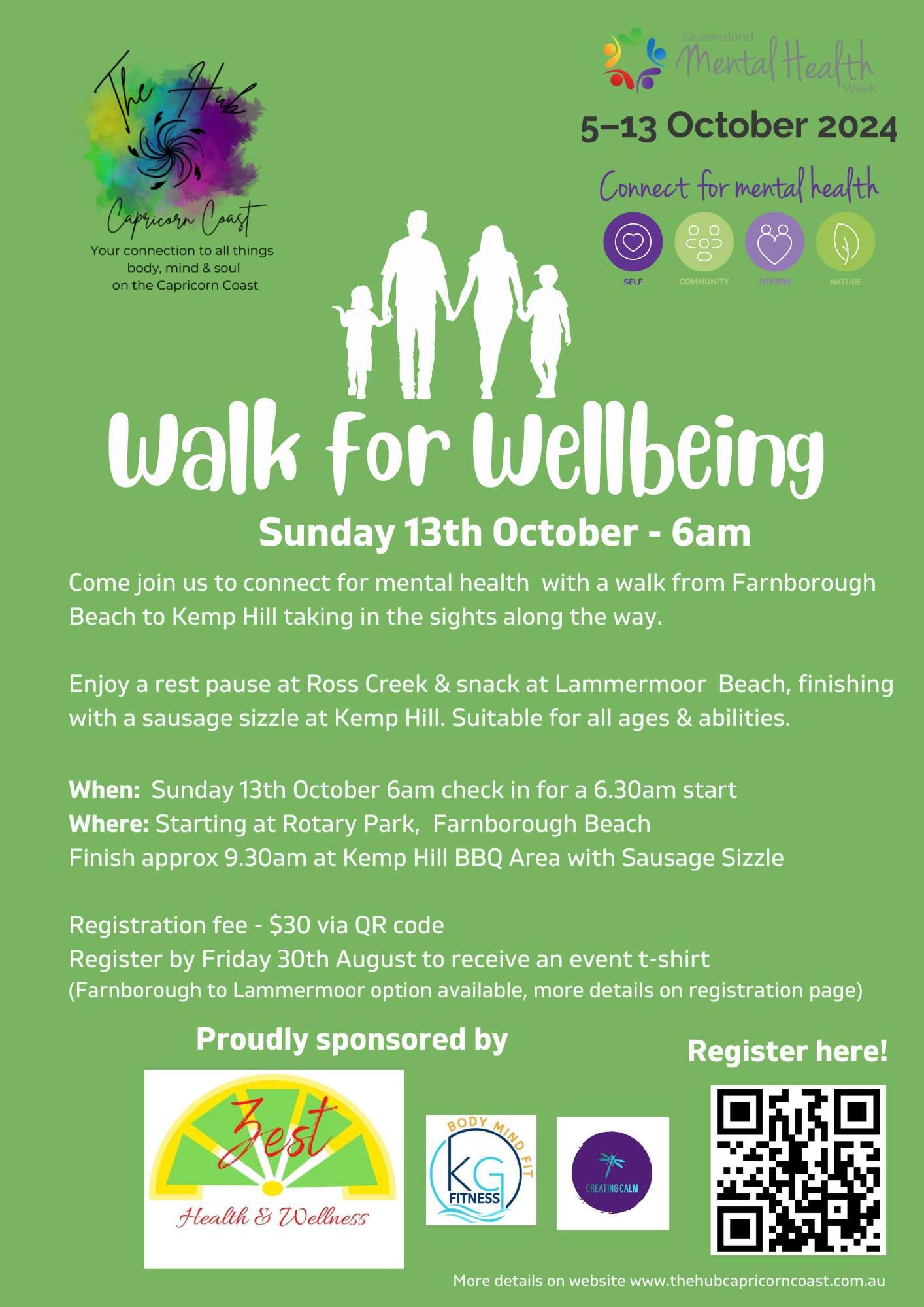 This year a half-walk option Farnborough to Lammermoor has been added to encourage more community members to come along and support the Queensland Mental Health Week Event, whilst taking time to enjoy some of our local iconic sights that can be missed in the hustle and bustle of day to day living