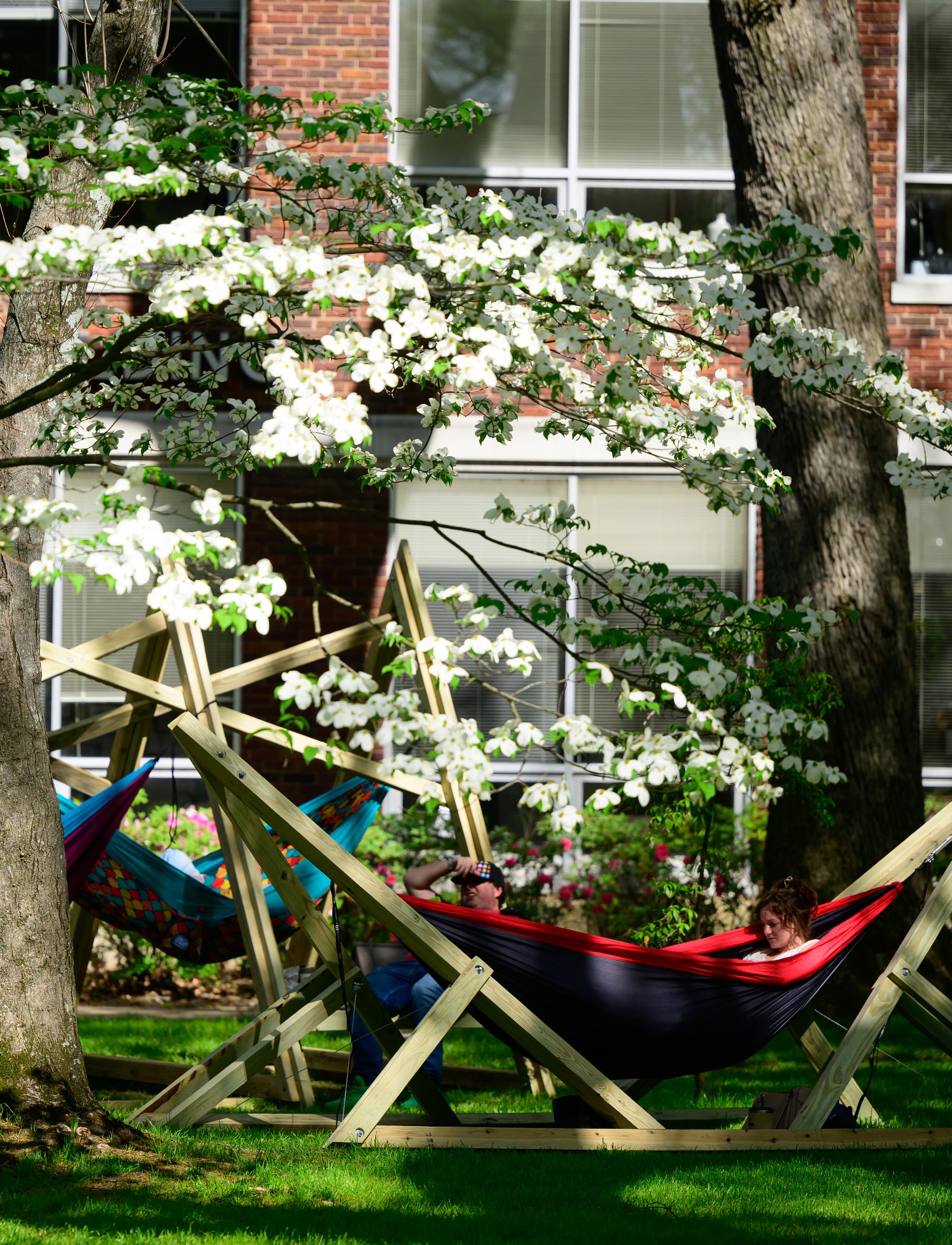 Students engage in a campus-wide game of Assassins during the spring semester.