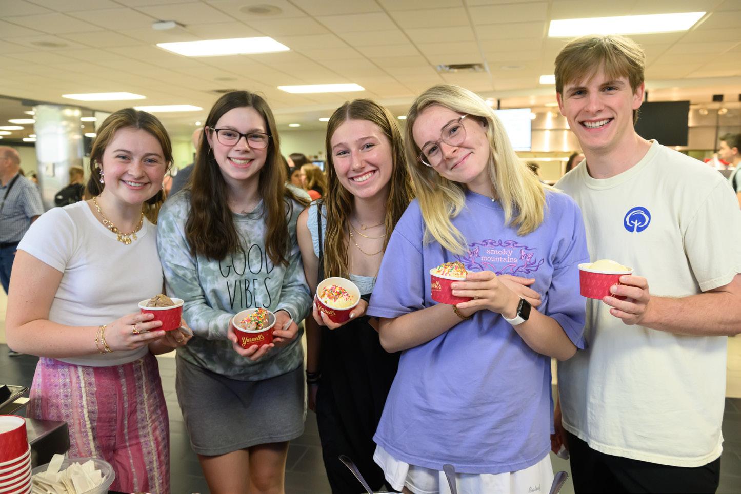 After the unveiling of the time capsule in chapel, many students attended the birthday celebration on the front lawn. A barbecue lunch was provided along with sponsorship from Yarnell’s Ice Cream and Coca-Cola. The Thundering Herd also performed live.