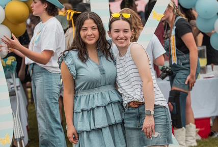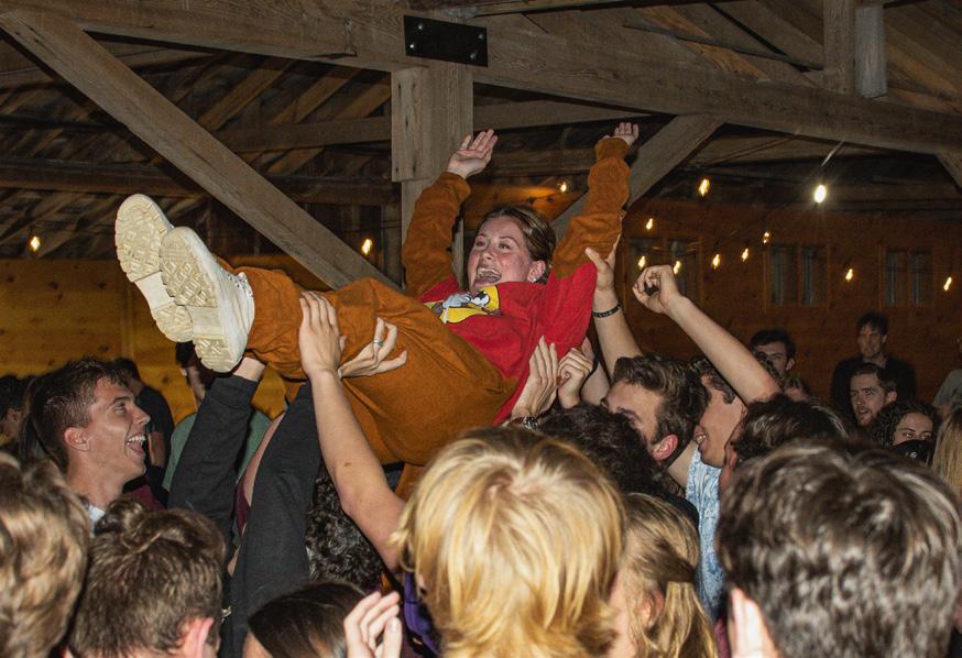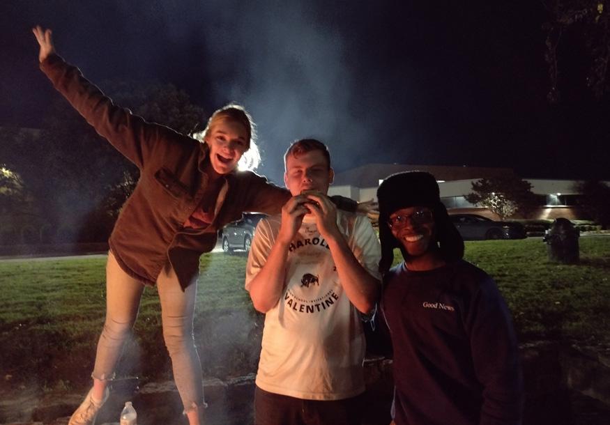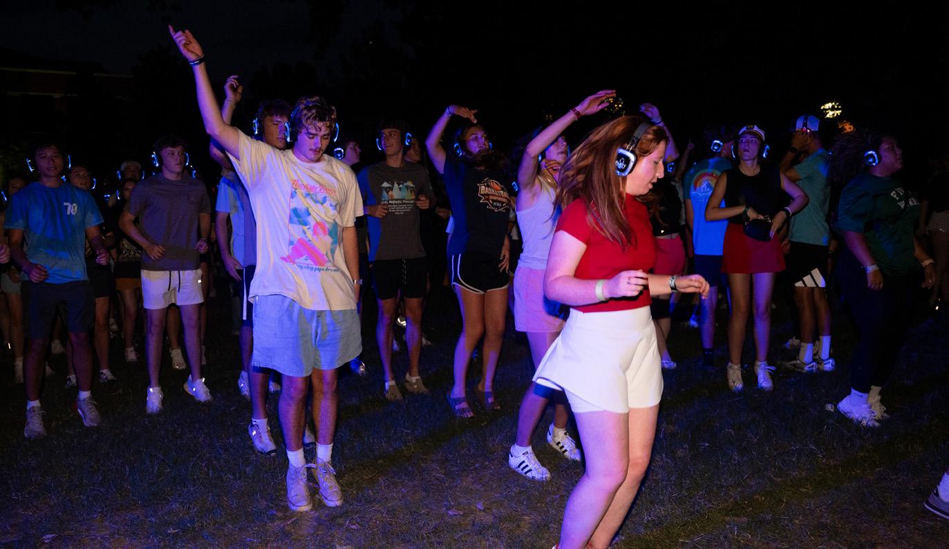 BOOGIE NIGHTS At the silent disco event, junior Tamson Smith-Gardner and sophomore Asa Fowler dance on the front lawn. This event disco, along with a hypnotist performance from Dale K, served as nighttime entertainment for freshmen