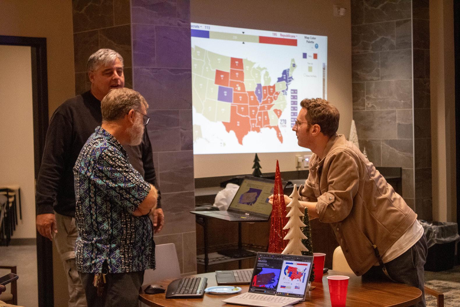 DEMOCRATIC DISCOURSE On election night, professors and students discuss the results pouring in. The event allowed for a wide range of people to experience the election.