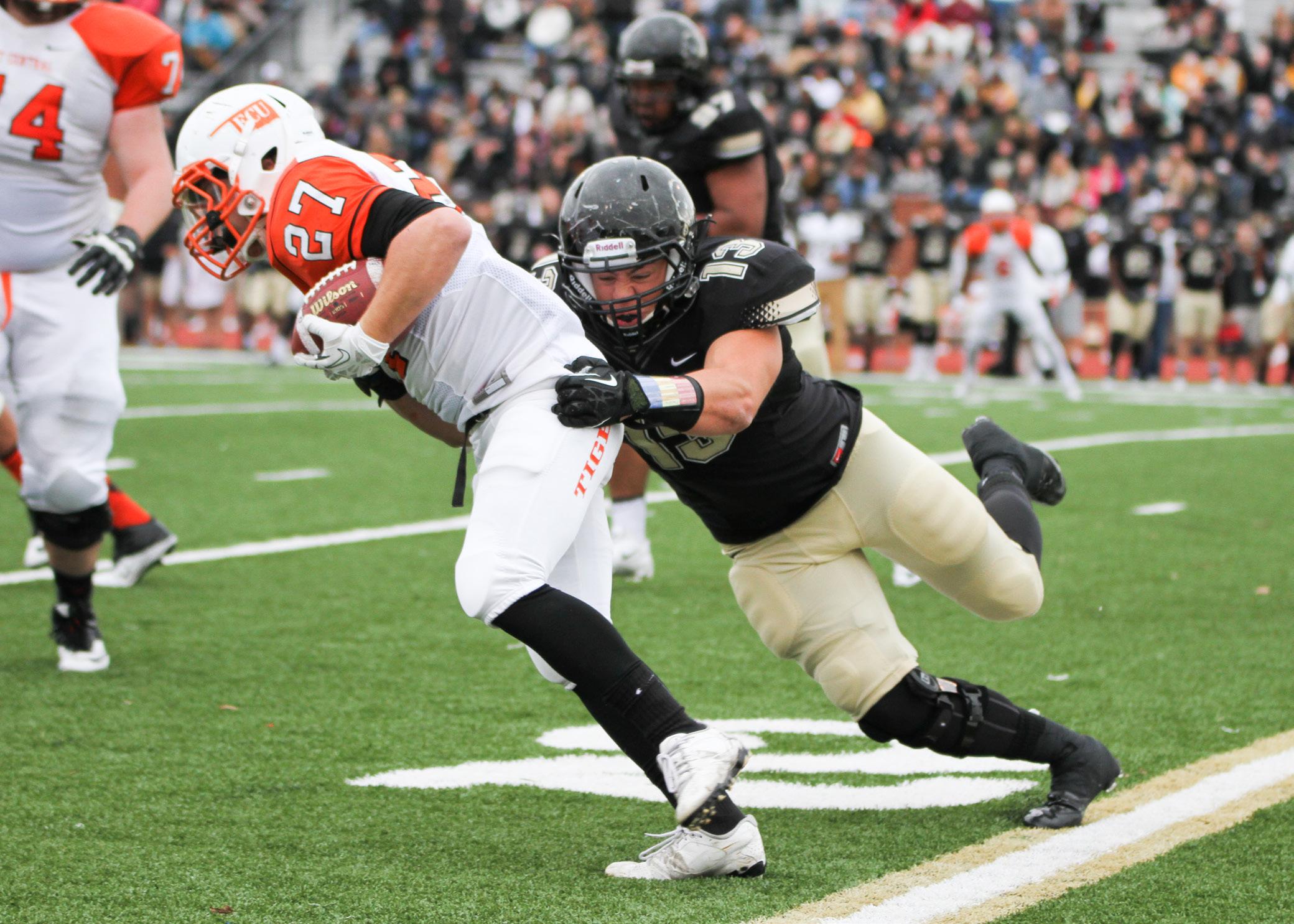 Senior linebacker Erik Ragsdale, No. 13, makes a tackle during the Bisons game on Saturday, Nov. 9. Harding defeated East Central University 52-30. On Saturday, Nov. 16, the Bisons will travel to Arkansas Tech University for their last regular season game. After the Tech game on Saturday, the Bisons will find out about postseason play. Harding hopes to receive a bowl game bid that is tentatively scheduled for Dec. 7.