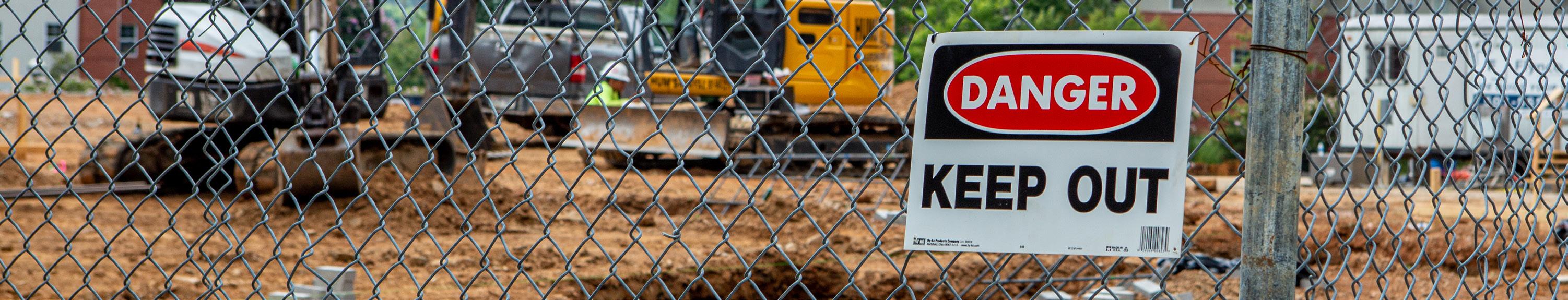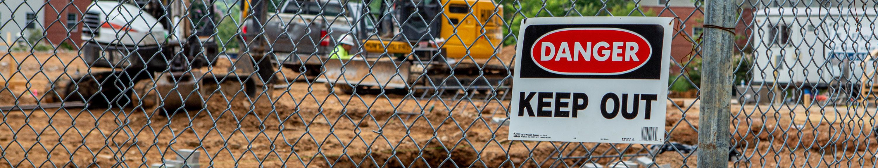 Many areas around campus have been fenced off for construction. Pictured, a “Keep Out” sign at the site of the upcoming Holland-Waller Center.