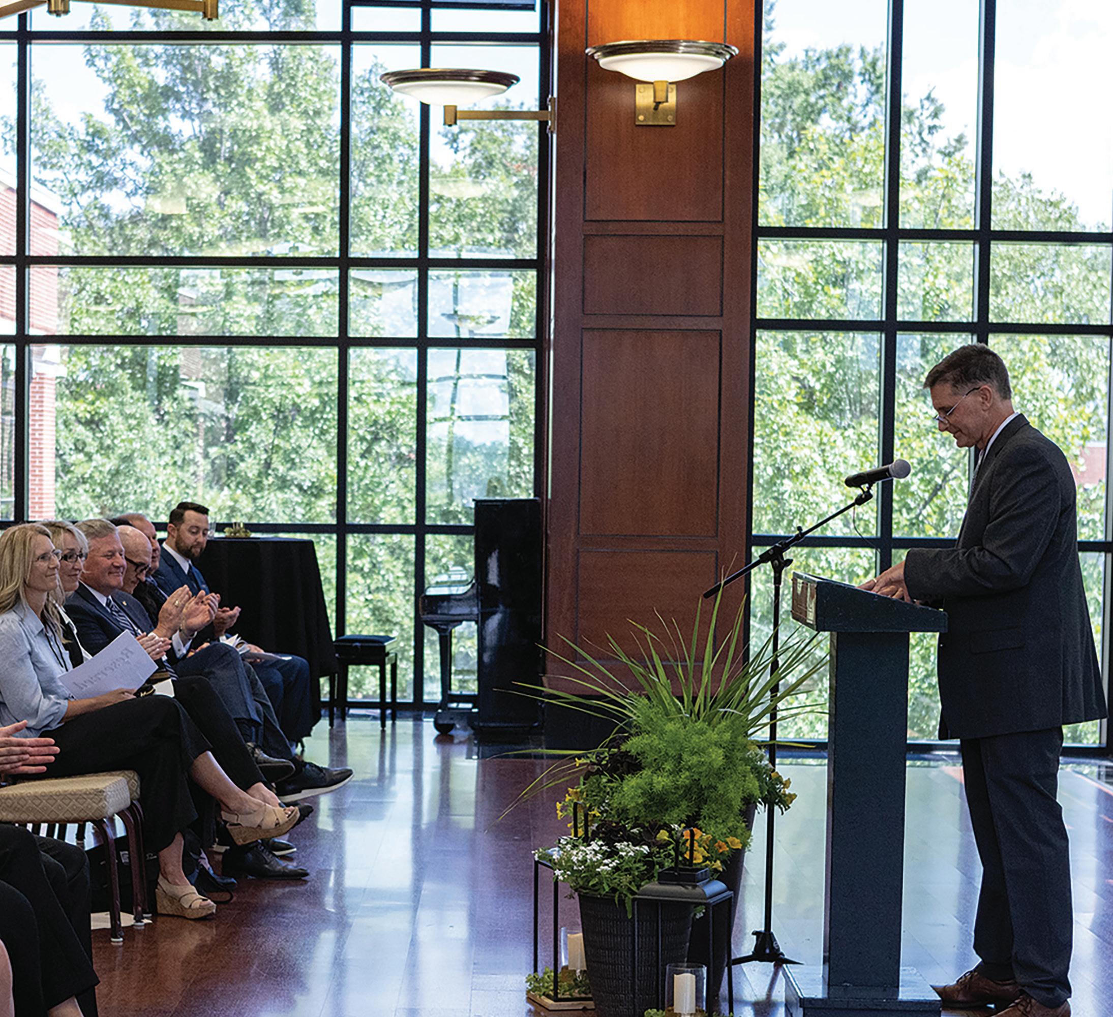 CFIT Director Ken Turley speaks at the CFIT program opening ceremony in Cone Chapel on Aug. 26. The first cohort of the 10-month CFIT program was recognized at the ceremony.